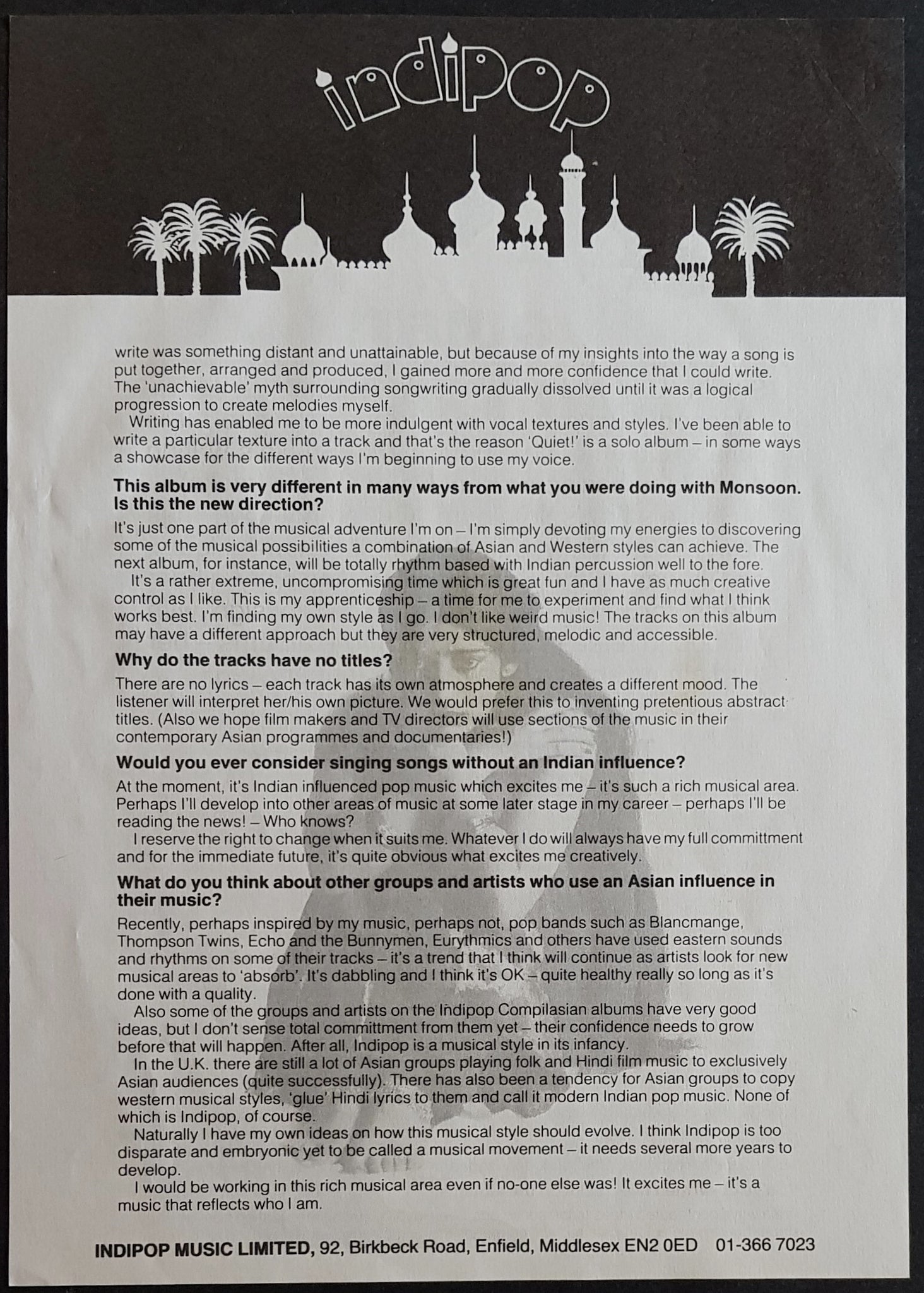 w.Insert (has crease and stain spots). 1984 Indipop SCH2. Cover has Small Surface Tear and Minor Creases Along Spine