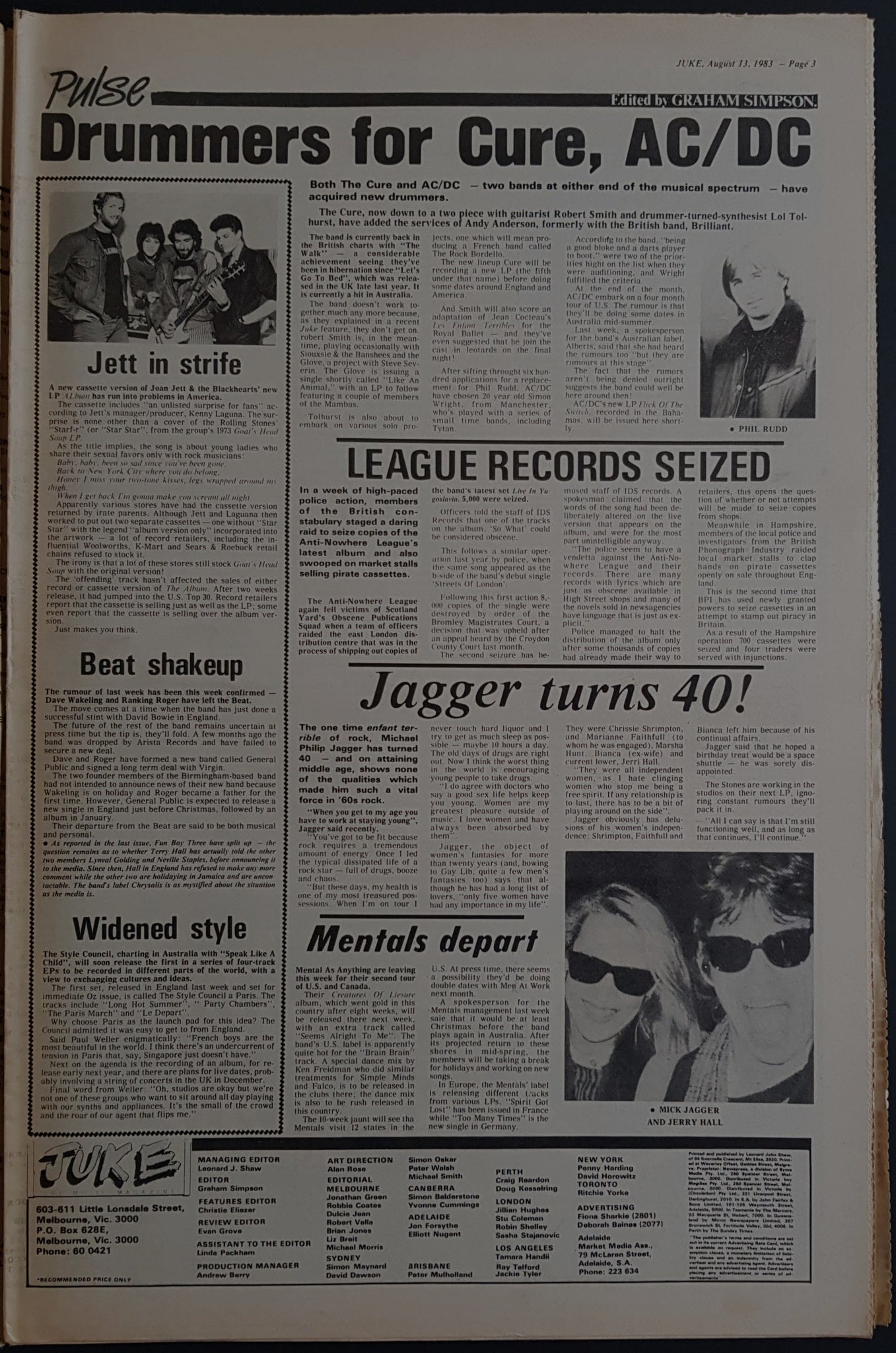 w. McLaren Cover & Article. Issue Also Features, Reviews And Or Has Ads for The Cure, AC/DC, Andy Summers, Stephen Cummings, New Order, Rose Tattoo, The Reels, Go-Betweens + Others.