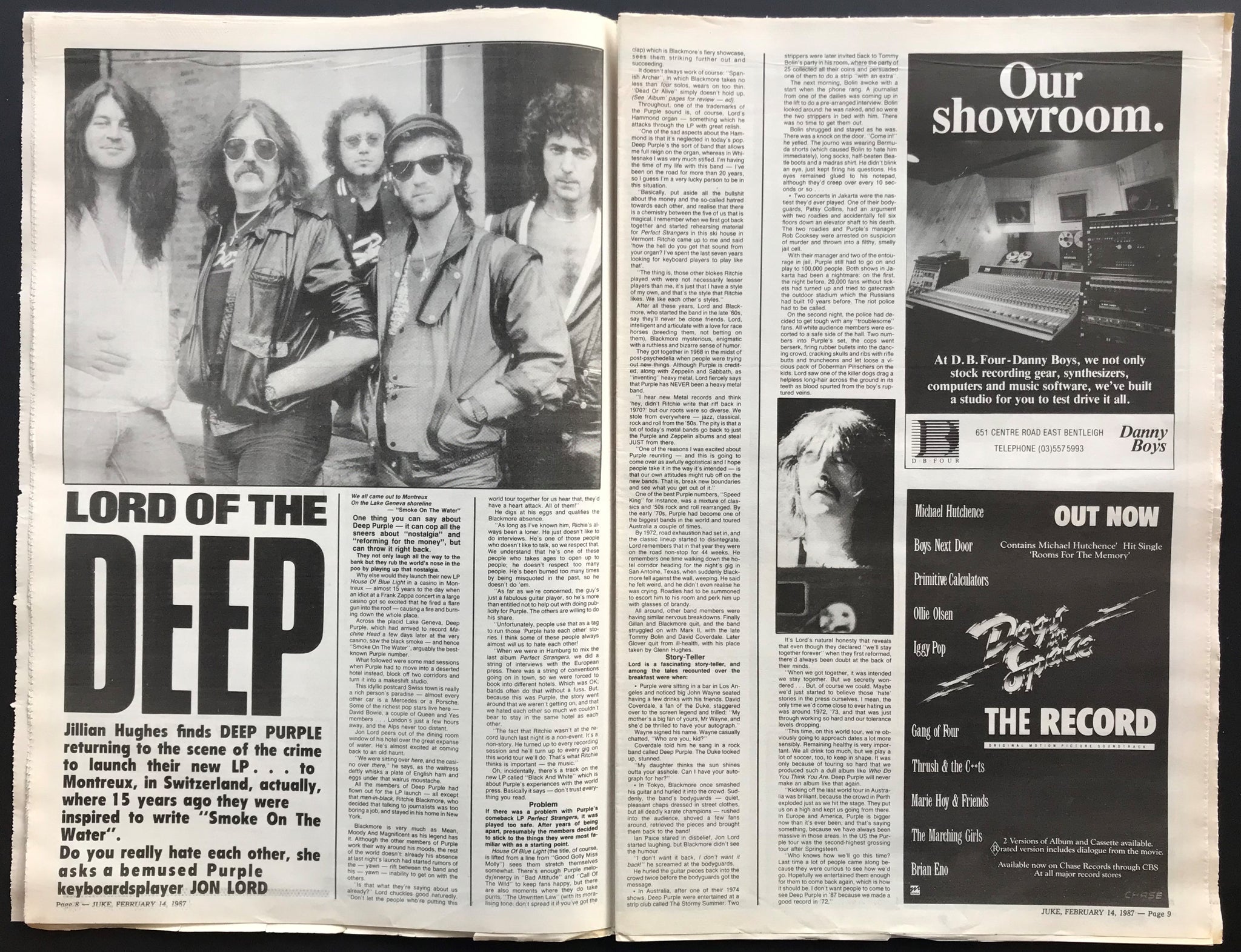 w. James Cover & Article. Issue Also Features, Reviews And Or Has Ads for Steve Kilbey Pt.2, New Order, Deep Purple, Davy Jones, A-Ha, Venom P. Stinger + Others.
