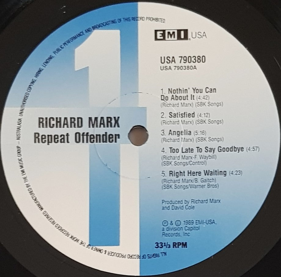 w.Inner Sleeve. 1989 EMI USA USA 790380. Minor wear and creasing on cover.