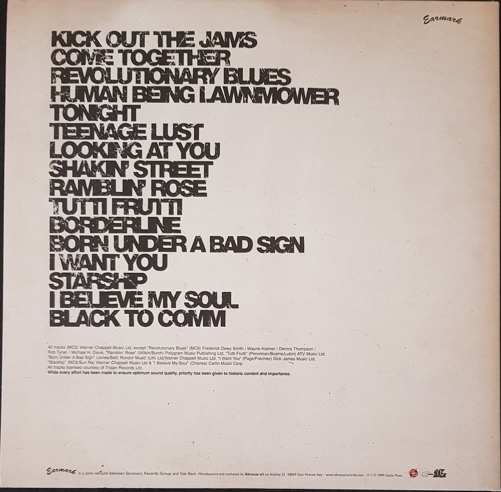 Compilation of rare live recordings. Gatefold Cover. 1999 Earmark 40001.