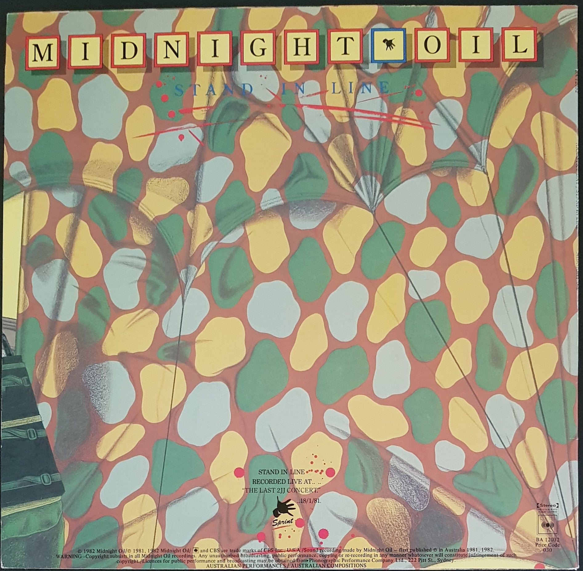 PS 1982 CBS BA 12032. w. Stand In Line Live at The Last 2JJ Concert January 18, 1981. Minor Creases on Sleeve
