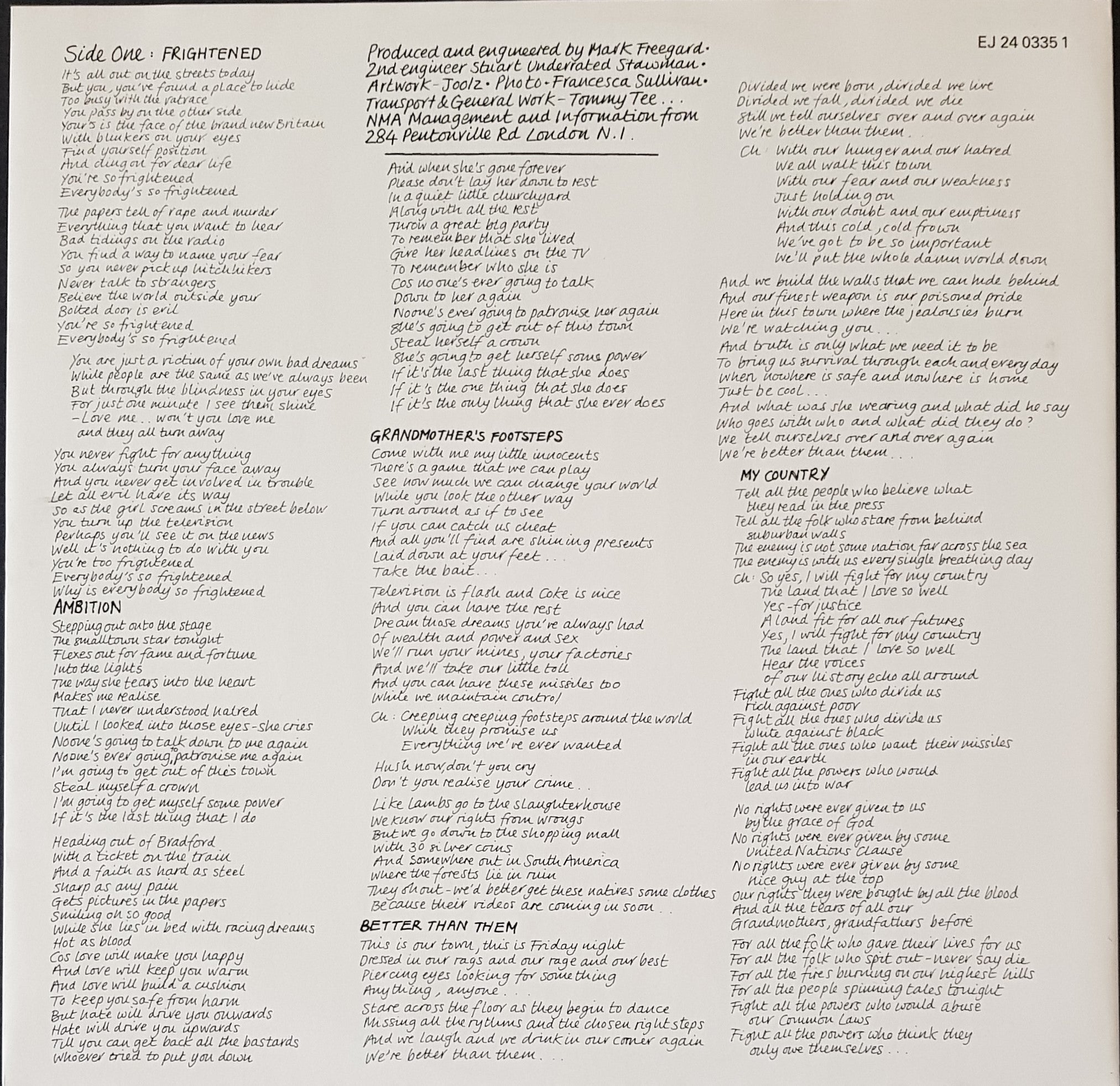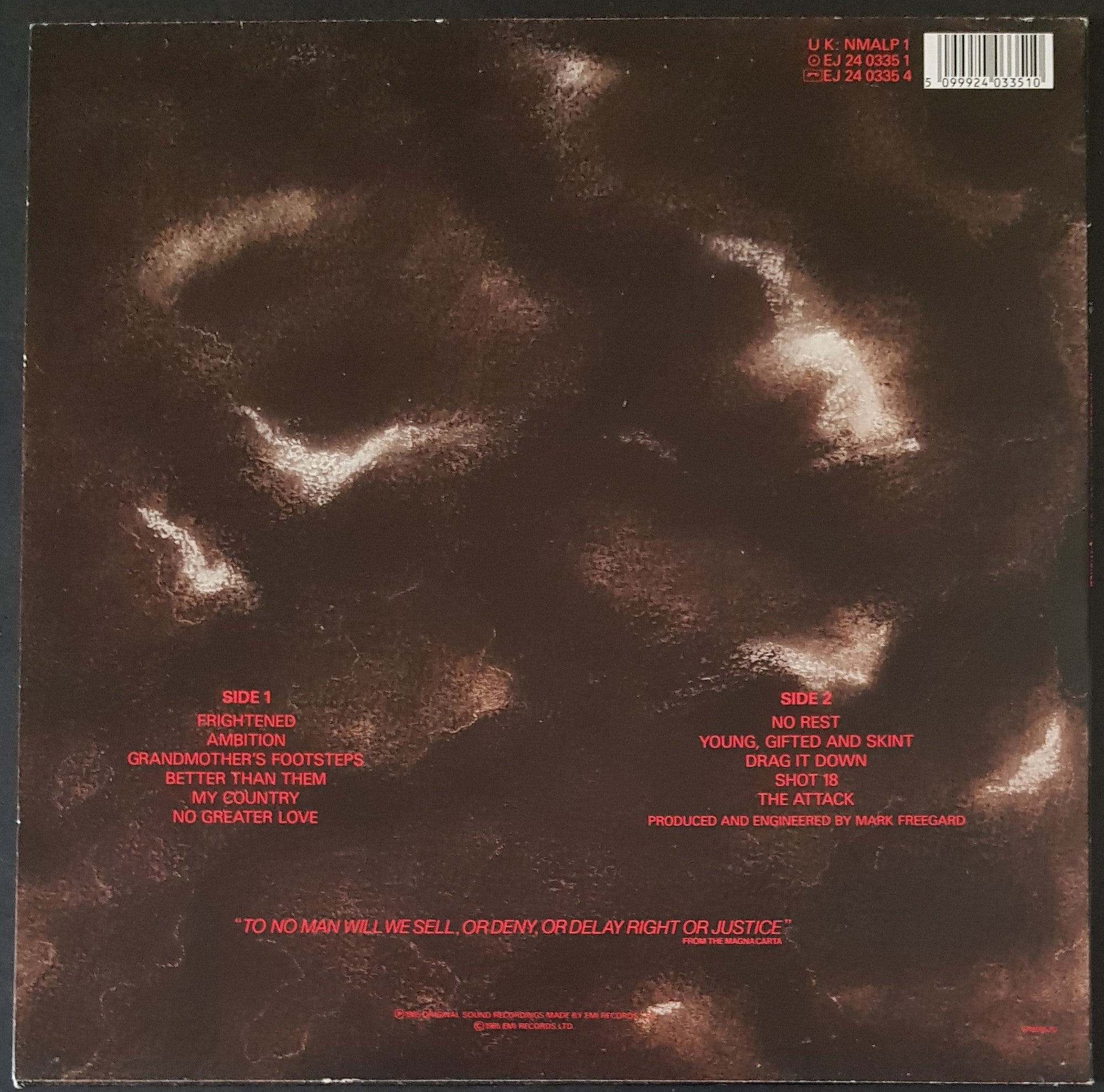 w.Inner Sleeve. 1985 EMI NMALP 1. Minor edge wear and creases on cover