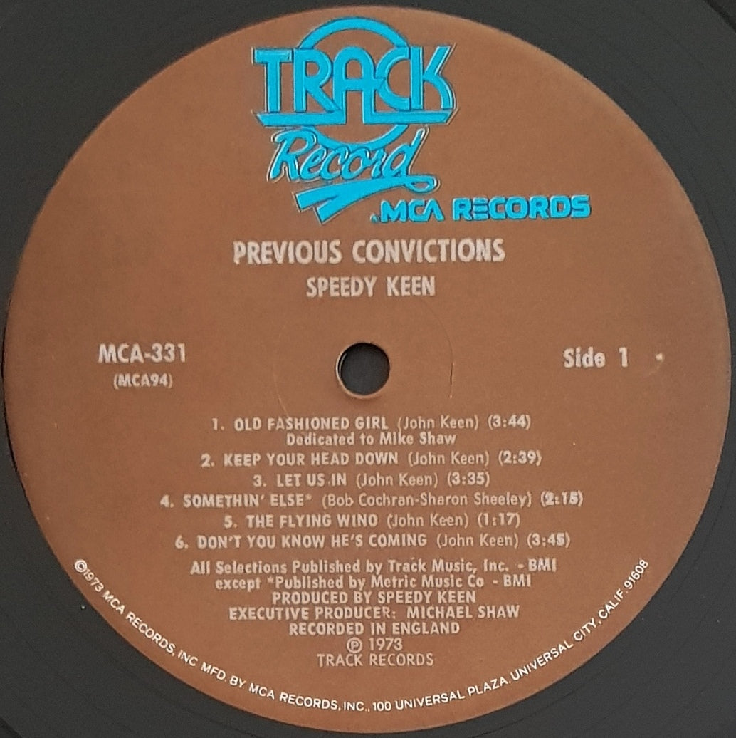 Thunderclap Newman (Speedy Keen) - Previous Convictions