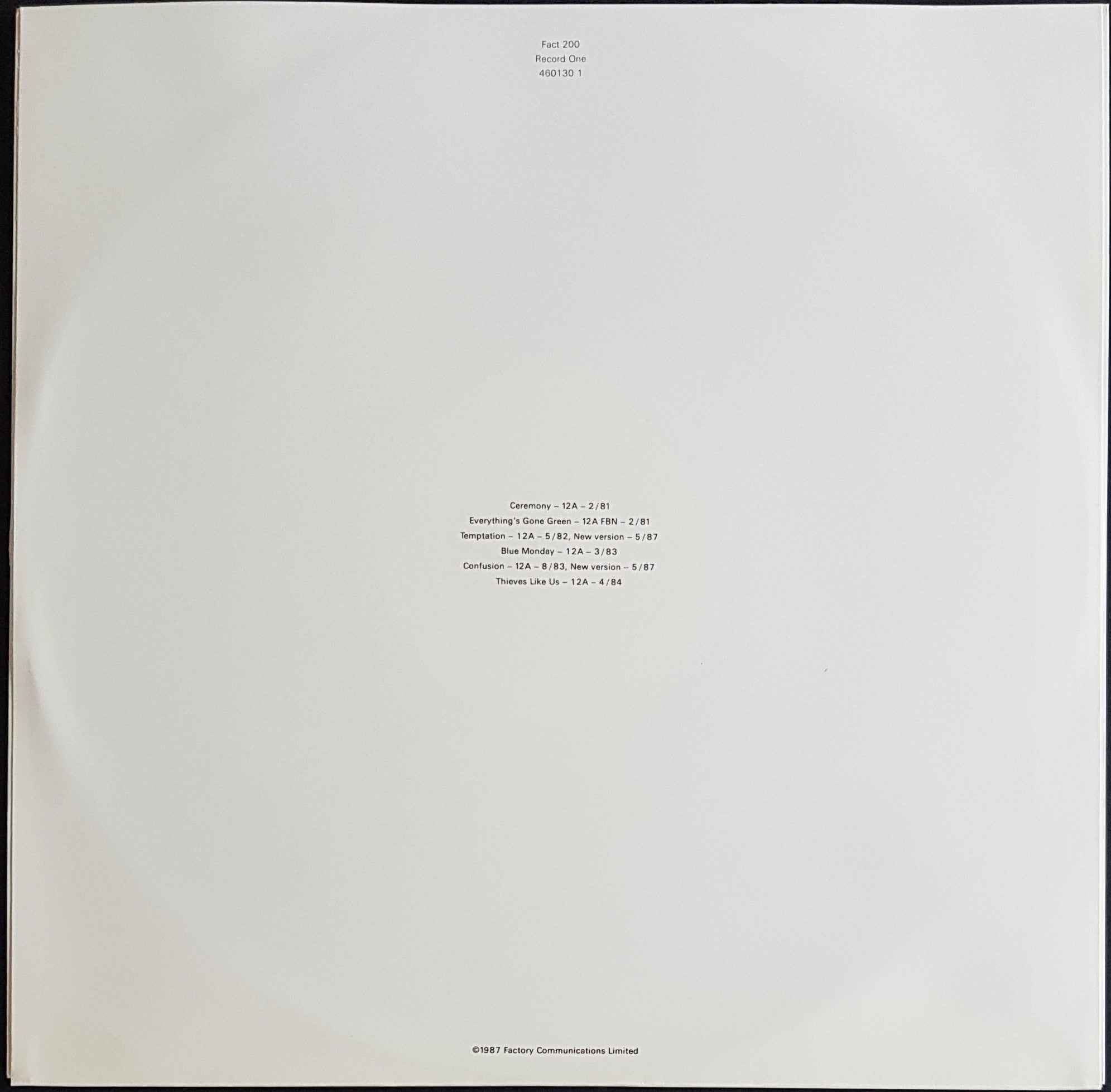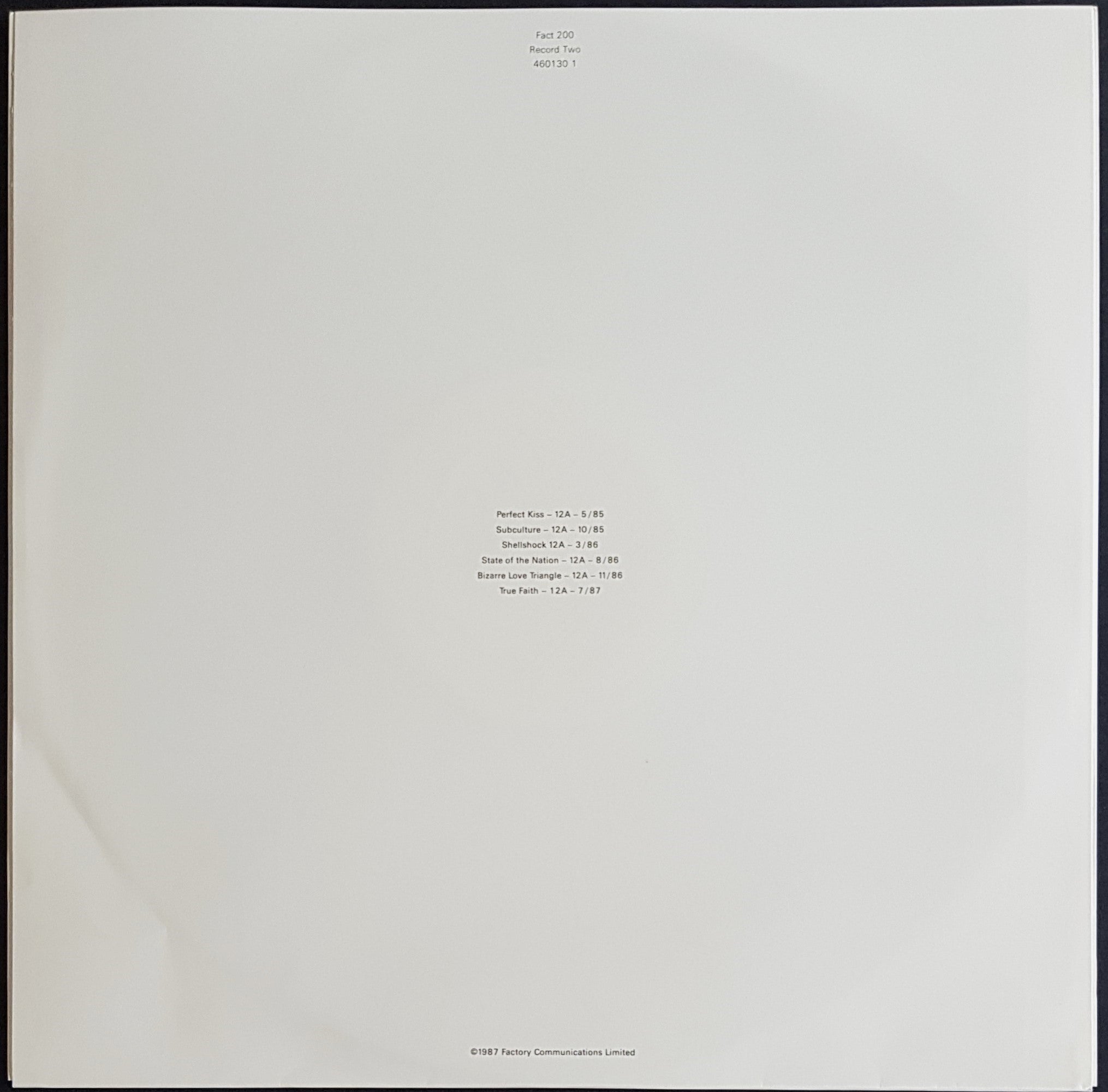 In Embossed Cover w.Inner Sleeves & Info Sticker on Cover. 1987 Factory Records Australasia 4601301. Cover has one 1" crease along spine. Surface Scuff Marks on Discs