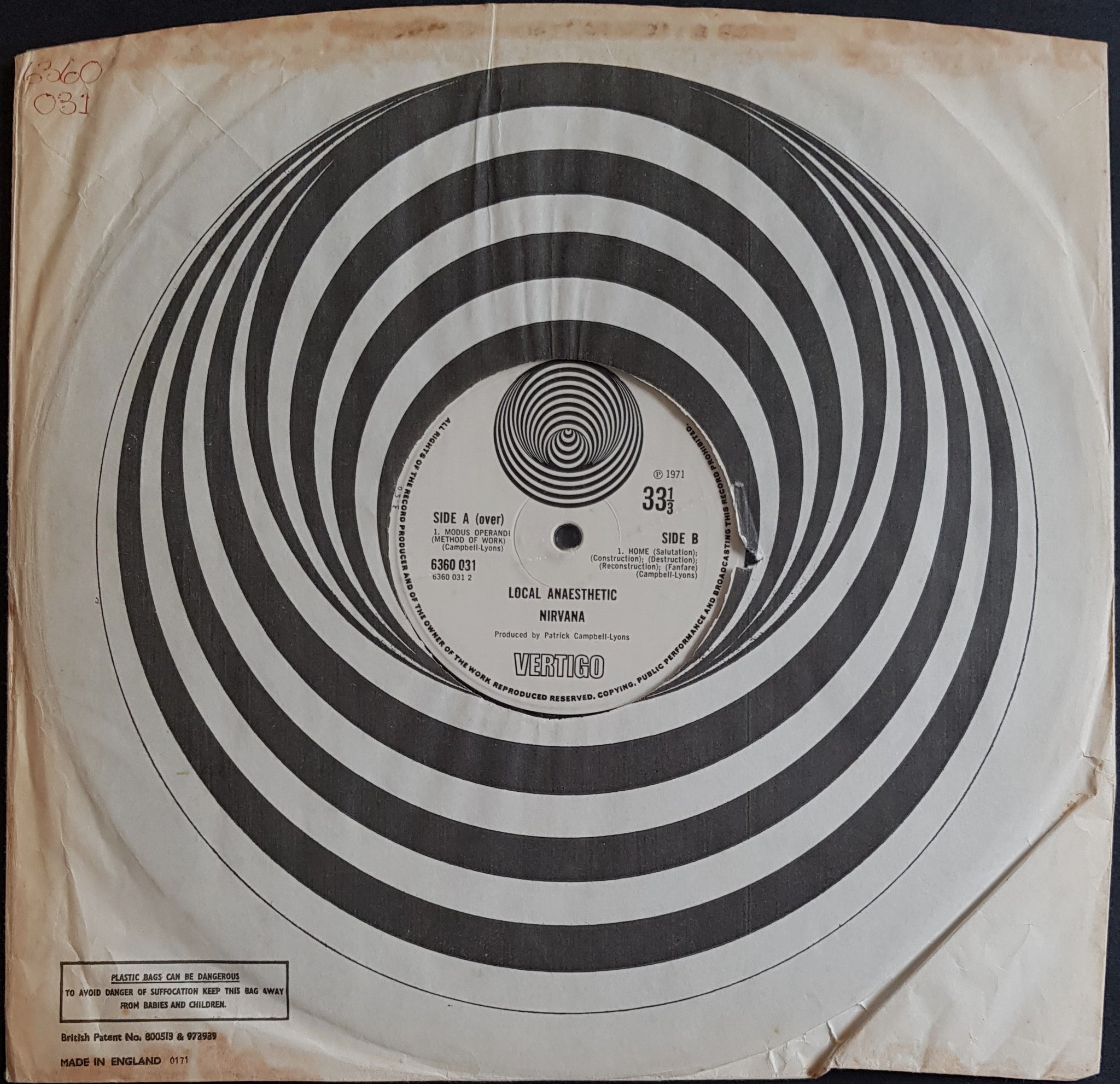 Gatefold Cover w.Vertigo Inner. 1971 Vertigo 6360031. Foxing, edge wear, creases, surface scraping on back cover along spine, and small writing on front. Very clean record, more EX than VG+, Foxing and small writing on labels.