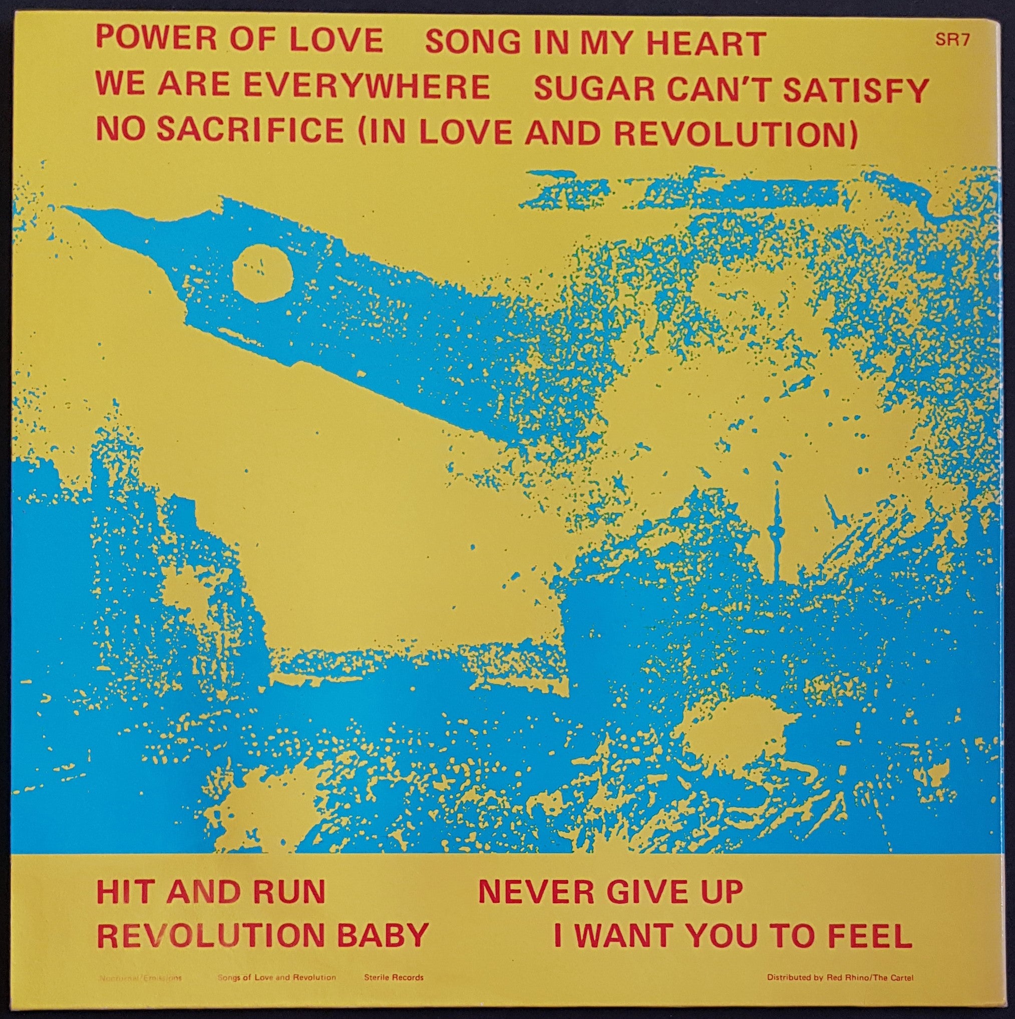 Gatefold Cover. 1985 Sterile Records SR7. Cover is water damaged, bottom right hand corner. Spine has faded.