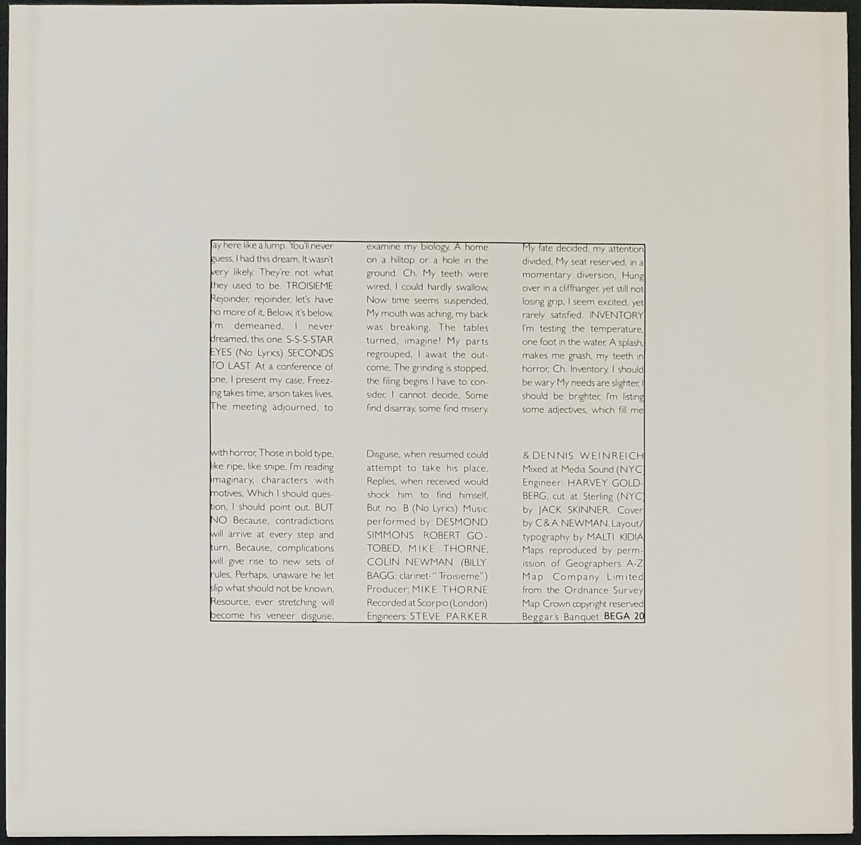 w.Inner Sleeve. 1980 Beggars Banquet BEGA 20.