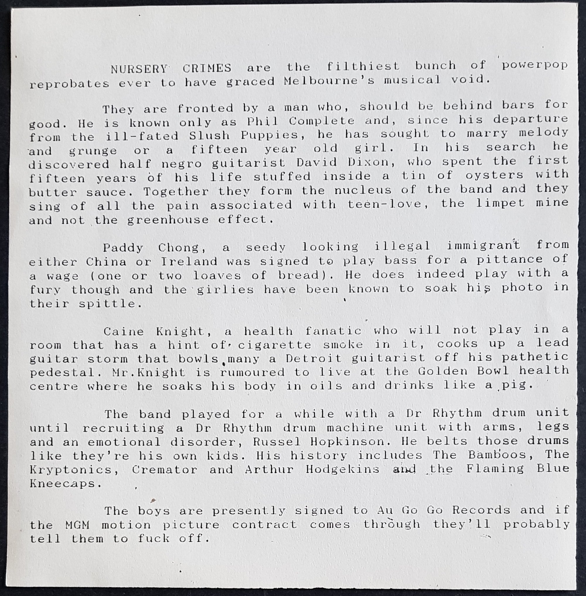 PS w.Insert. 1990 Au Go Go ANDA111. Fast Melodic Power-pop Punk. Minor scuffing on sleeve