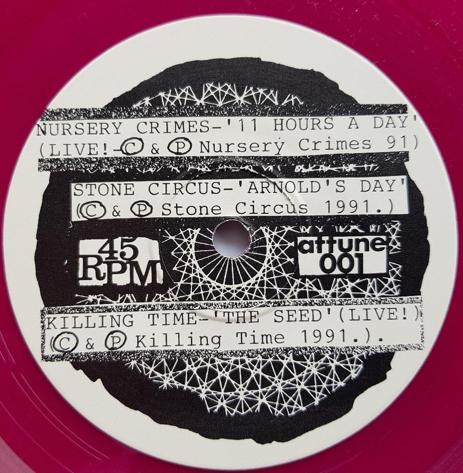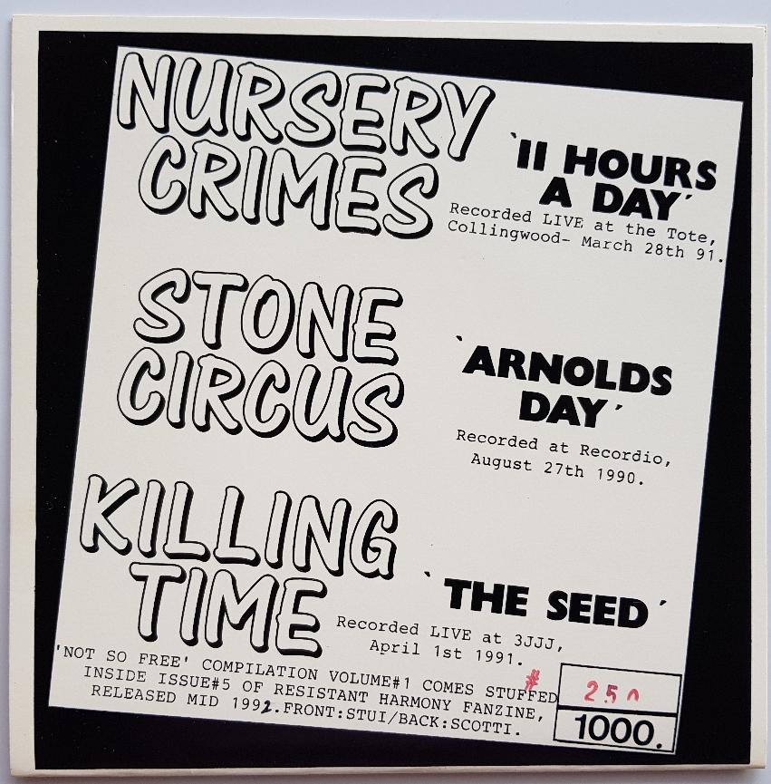 3 Track Various Artists EP PS. Features the track "11 Hours A Day" Recorded Live at The Tote. Also features Stone Circus & Killing Time. 1992 Release that came with "Resistant Harmony Fanzine". 1000 Copies only. One of 250 on Purple Vinyl.