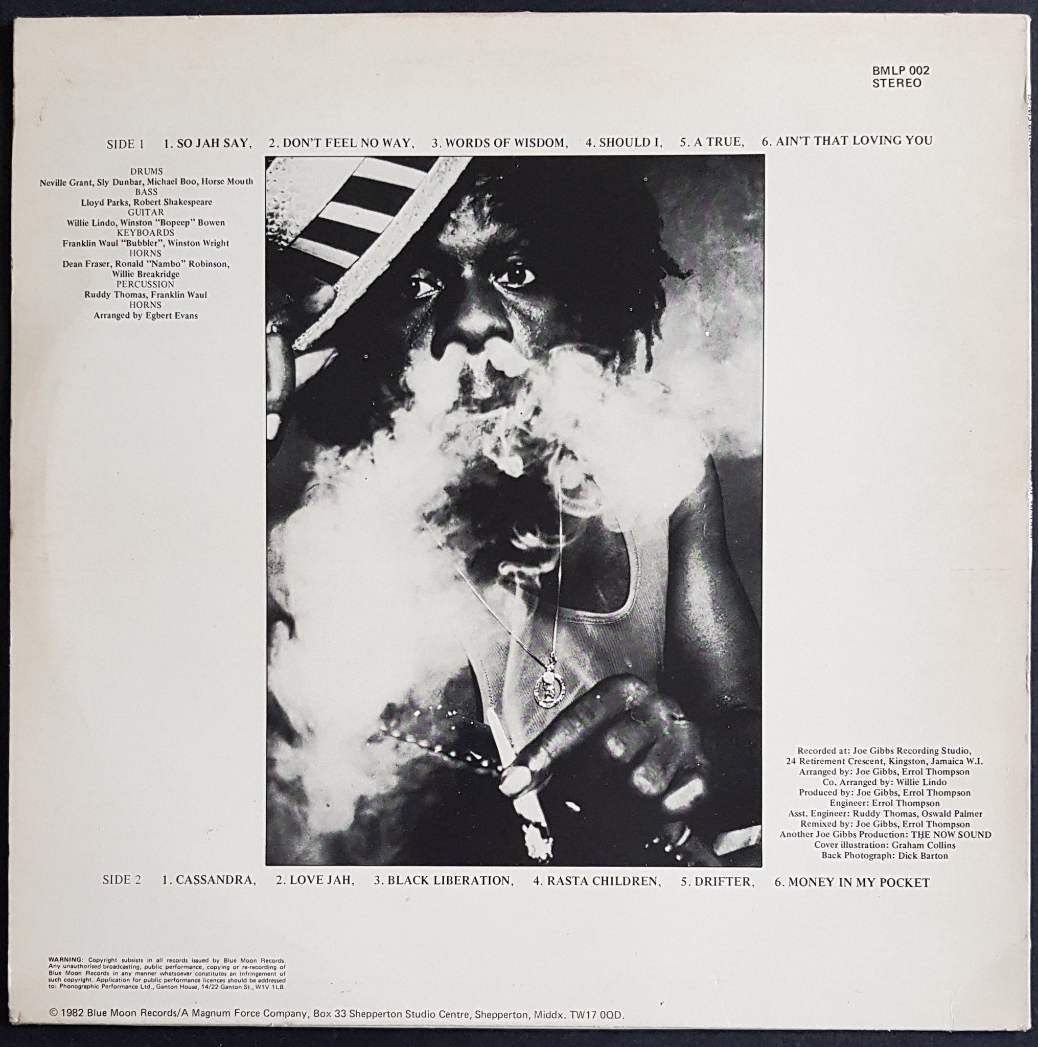 1982 Blue Moon BMLP 002. Minor Wear and Creases on Cover. 2 tiny surface tears & 35mm x 100mm reference sticker on front cover. Very clean record.