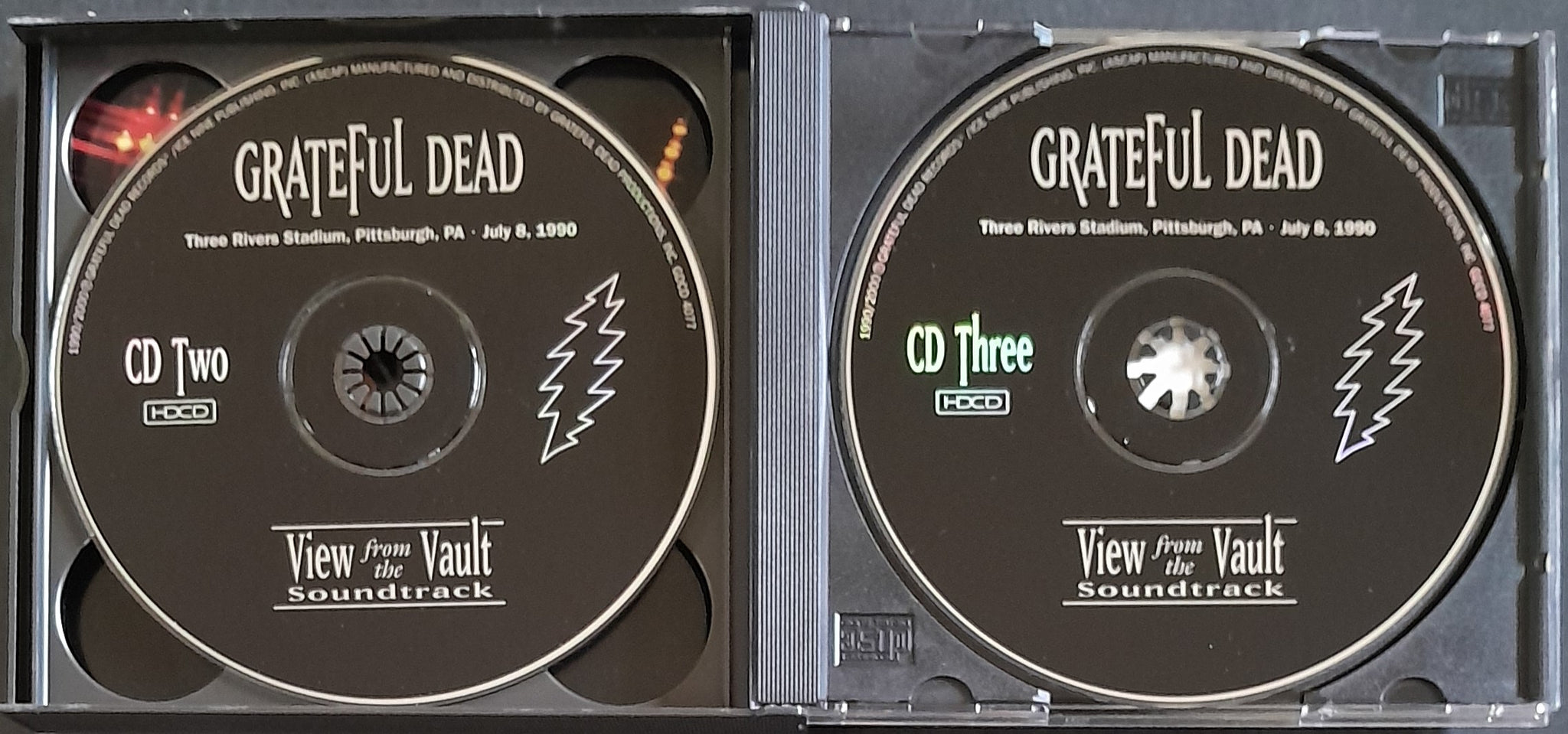 HDCD. 2000 Grateful Dead Records GDCD 4077. Live at Three Rivers Stadium, Pittsburgh, July 8, 1990. Except last three tracks, recorded live at Cardinal Stadium, Louisville July 6, 1990.