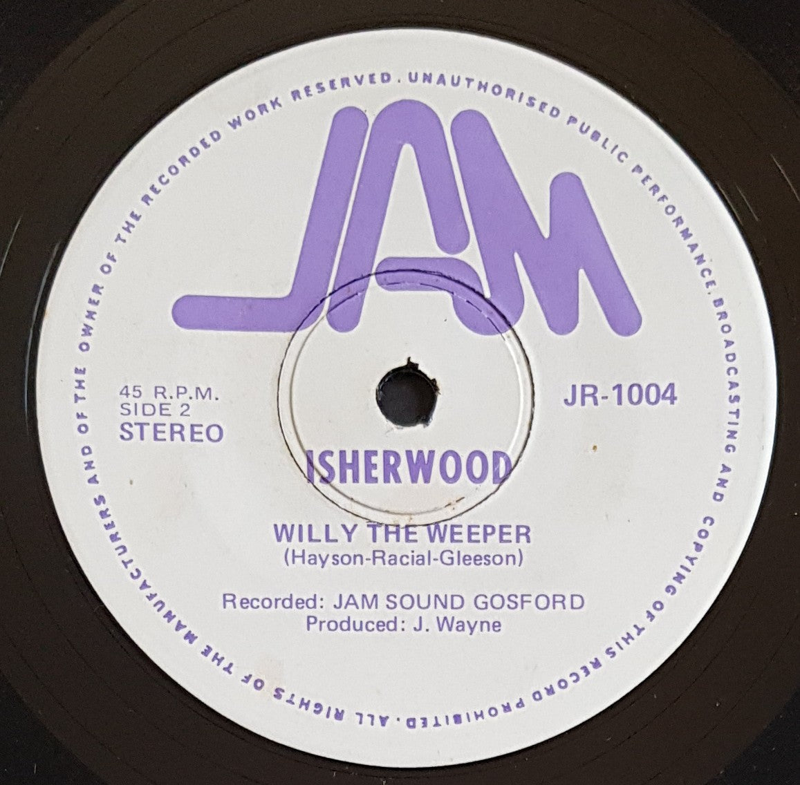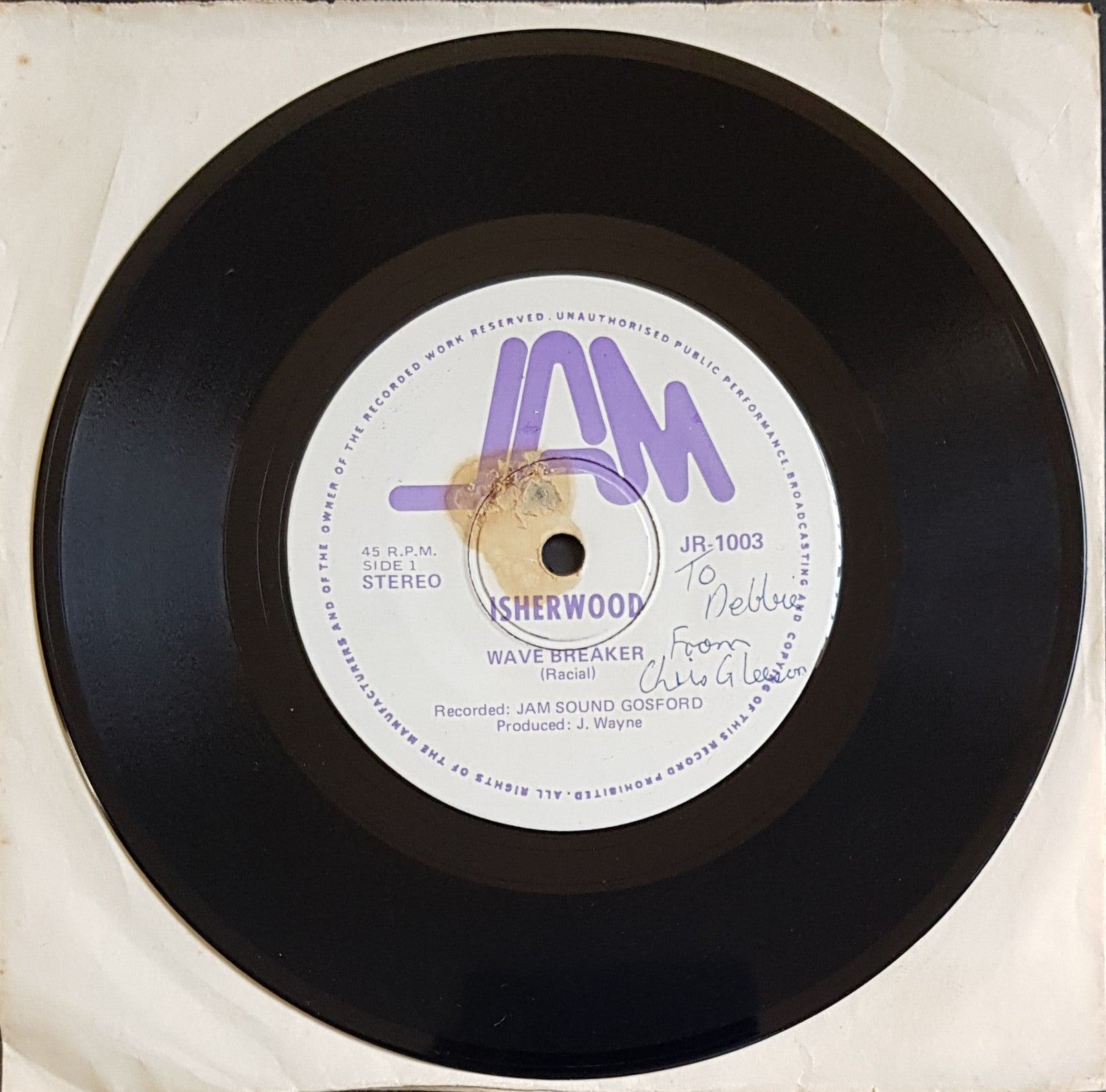 1975 JAM JR-1003. Rare Independent Release. Wave Breaker is a Guitar Based Surf Track, While Willy Is About A Stoned Chimney Sweeper with Great 'Lobby Loyde' Like Guitar Boogie Sound. Stain on label which is also signed and dedicated to Debbie by Chris Gleeson.