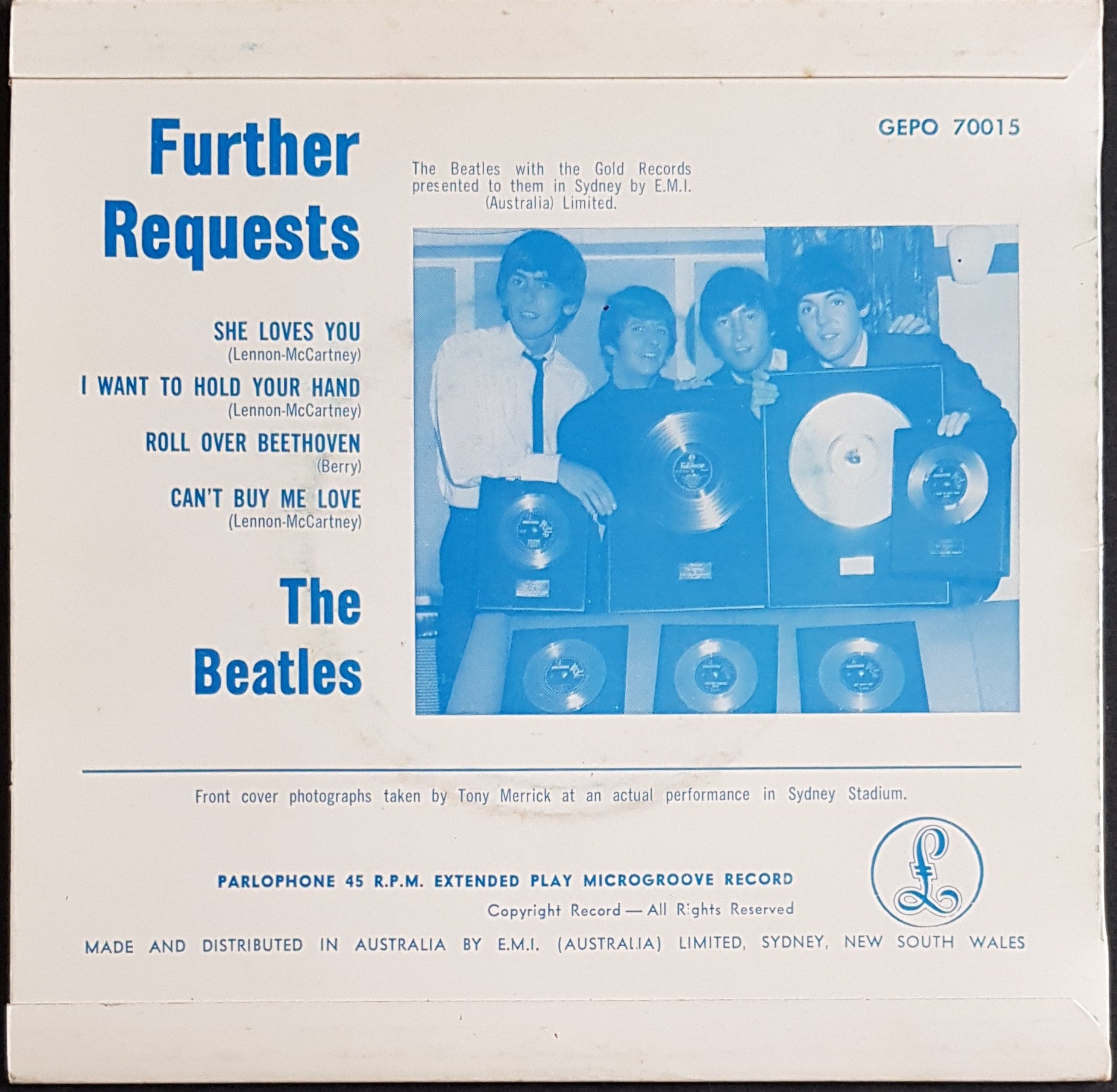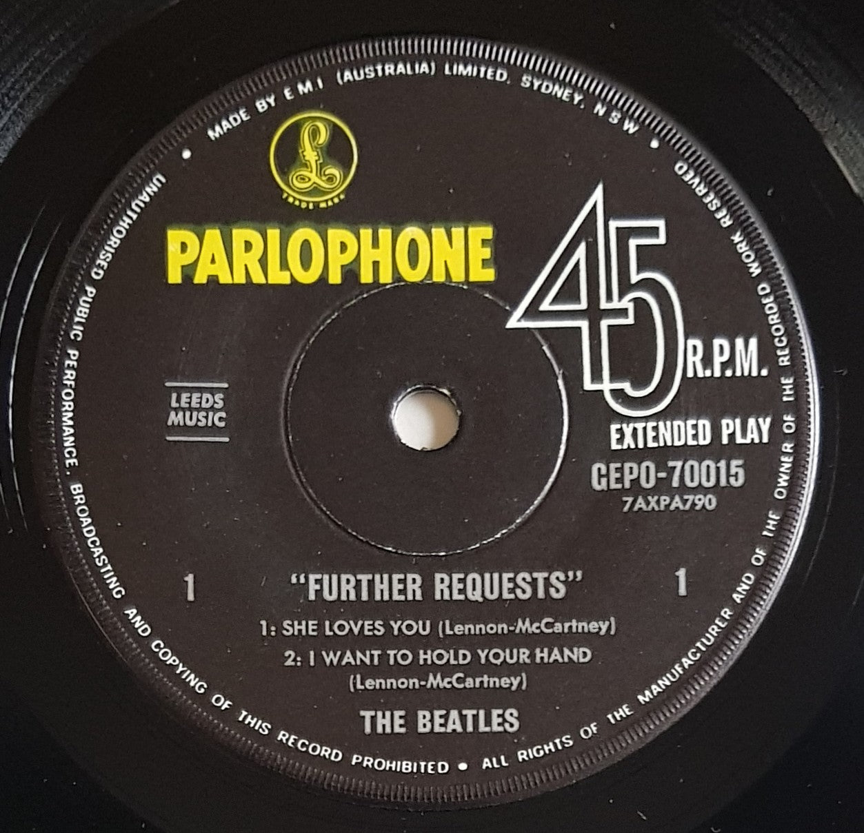 EP PS. 1964 Black & Yellow Label Parlophone GEPO 70015. Ring mark from anti-skate ring, minor wear and foxing on cover