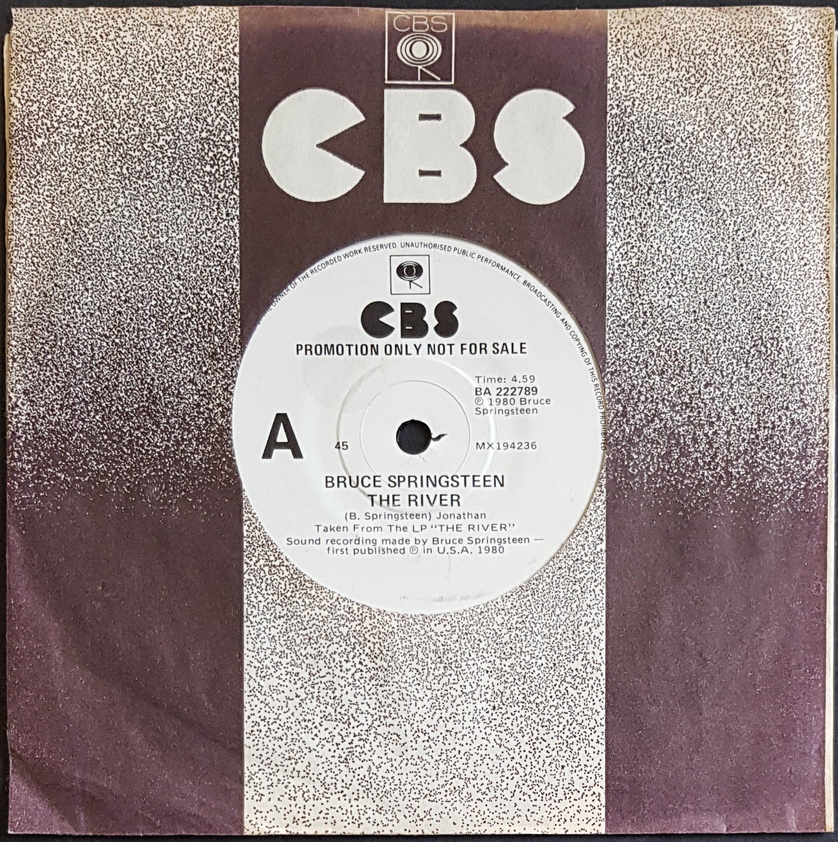 White Label Promo. 1981 CBS BA 222789. Sticker stain on A side label. Small stain on B side label