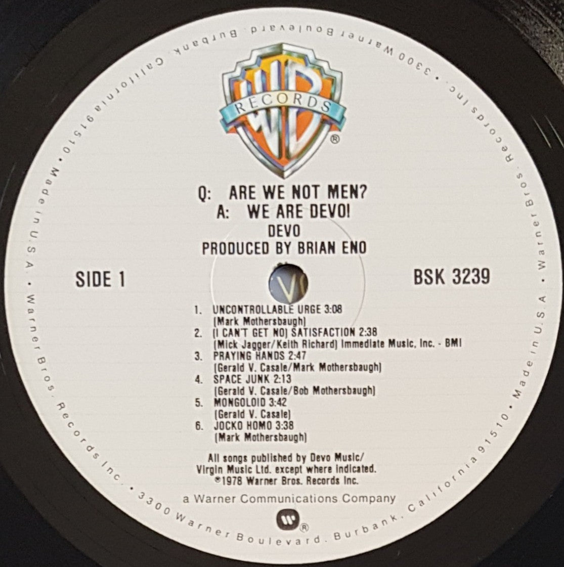 w.Inner Sleeve. 1978 Warner Bros.BSK 3239. KM Pressing. Light creases along edges which also have some wear, as do the corners. Small marks on Mongoloid, otherwise clean
