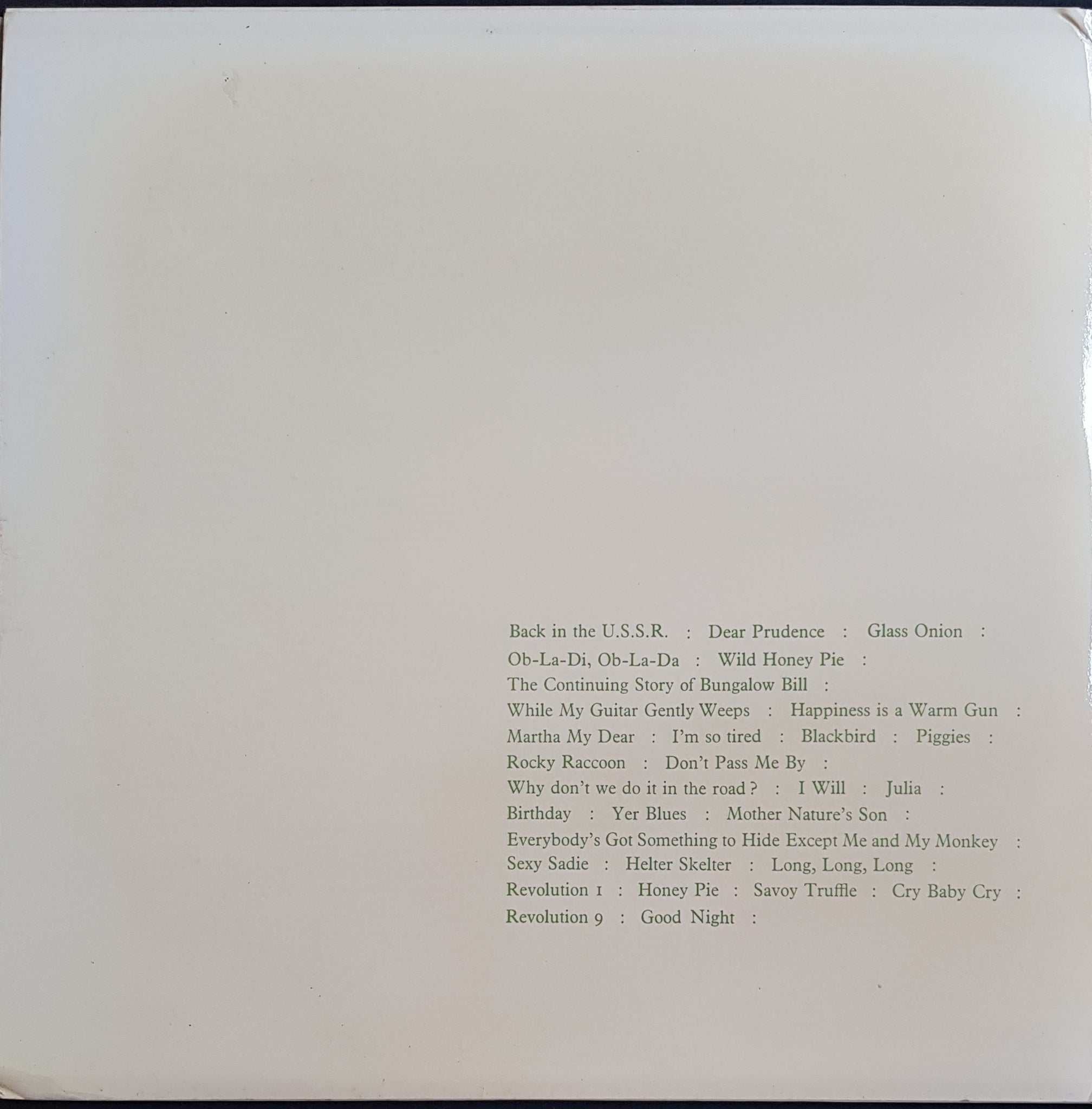 Un-numbered, Embossed Laminated Gatefold Cover w. Poster & 4 Picture Cards. 1971 Apple PCSO-7067/8. Cover has small corner bumps and has browned over time.