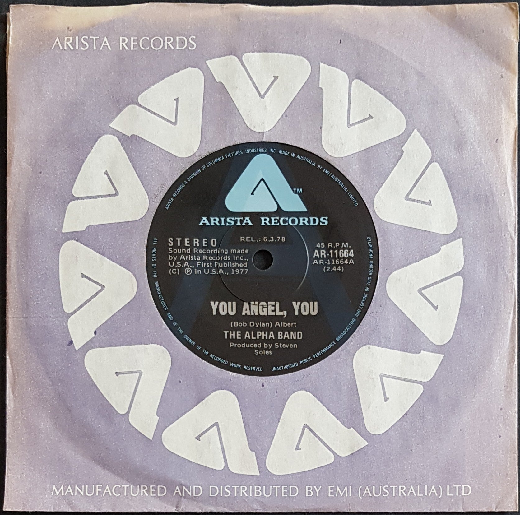 'A' Label Promo. 1978 Arista AR-11664. Bob Dylan Cover