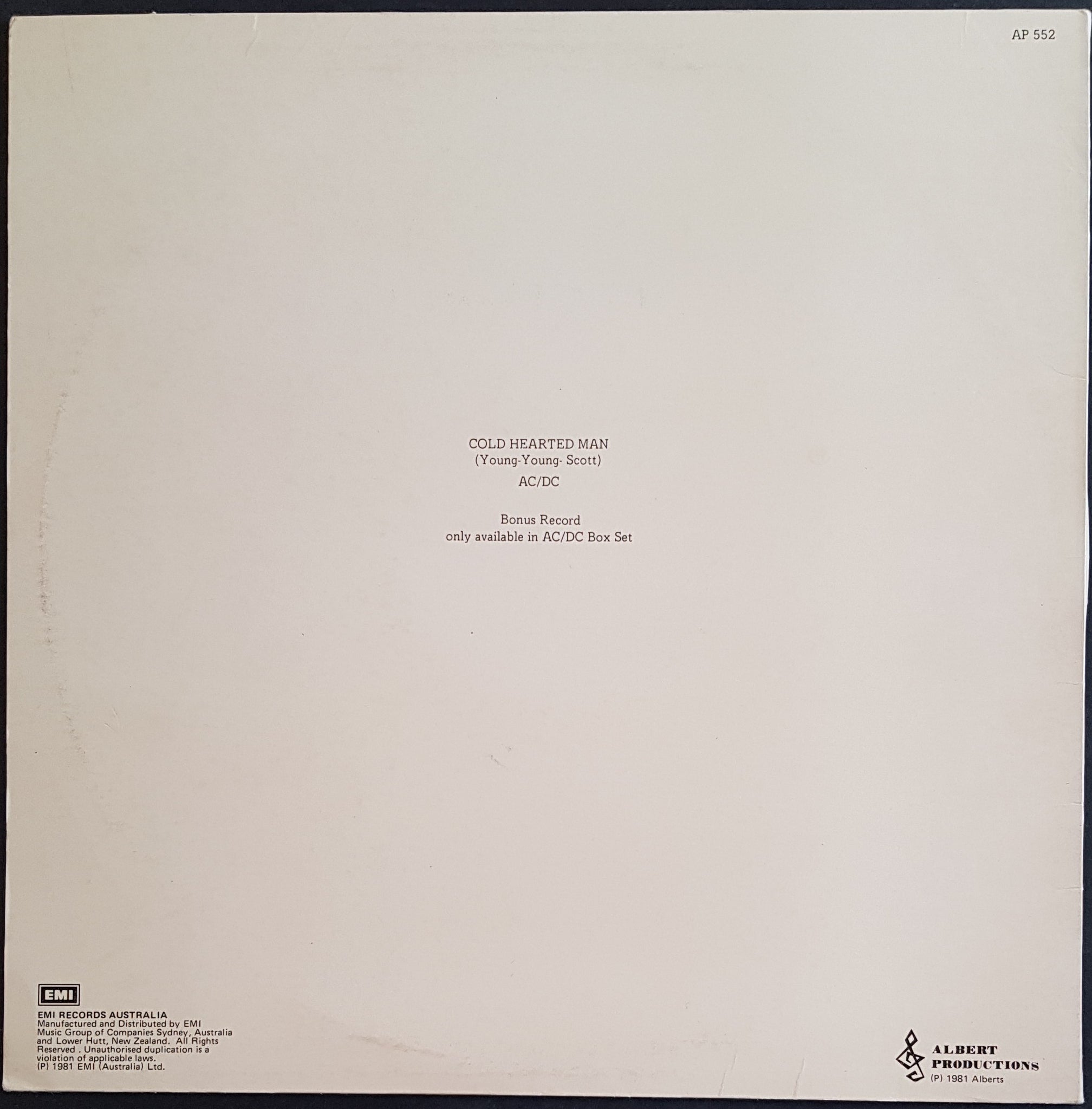 PS. 1981 Albert Productions AP-552. Red Label w. Yellow Border. Bonus From Box Set. Cover has creasing, ring wear, surface scuffs & small tears on top seam
