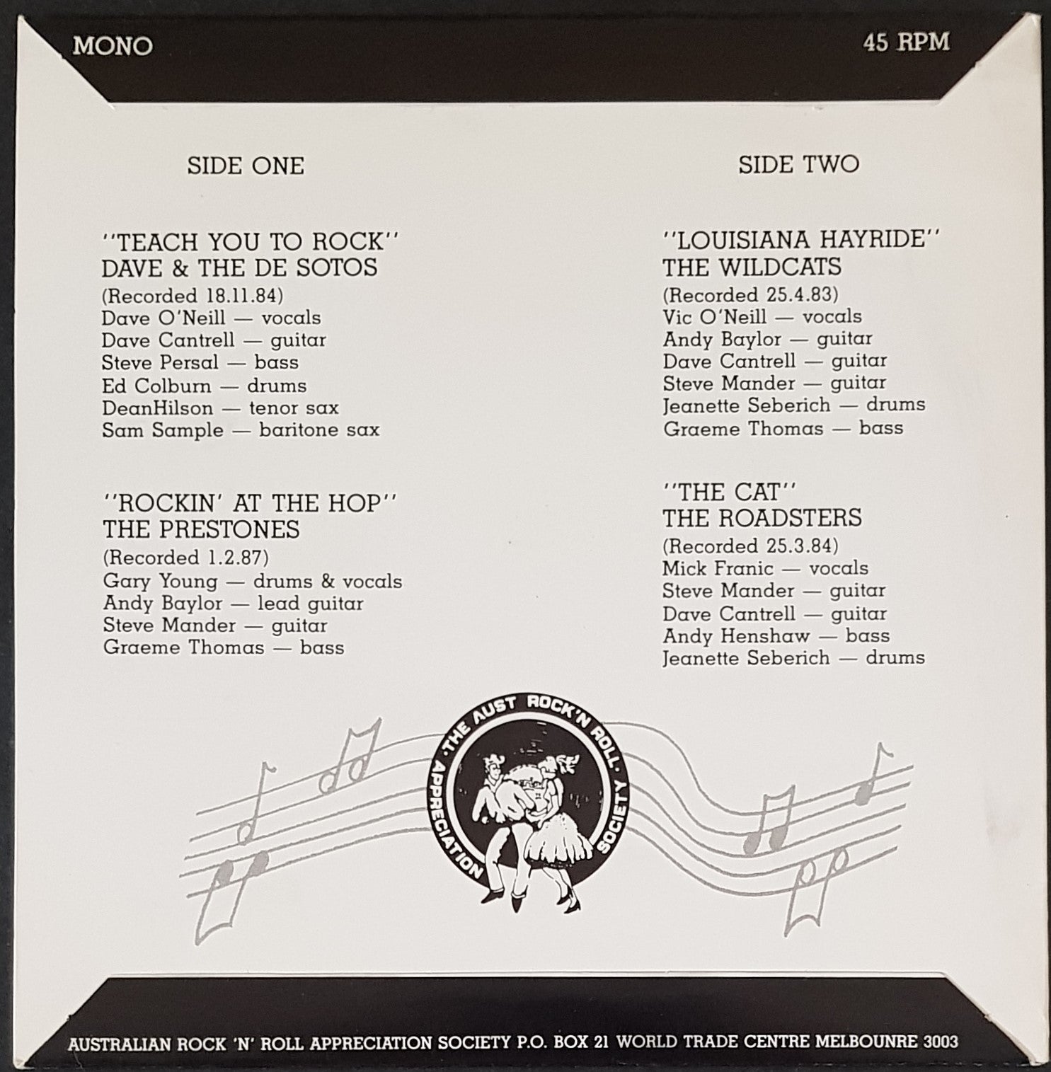 EP PS. 1987 Preston PEP-5024 / ARAS-0001. Aus. Rock'n'roll Issue w. Roadsters, Wildcats, Prestones & Dave & The De Sotos. Small crease on spine edge of cover
