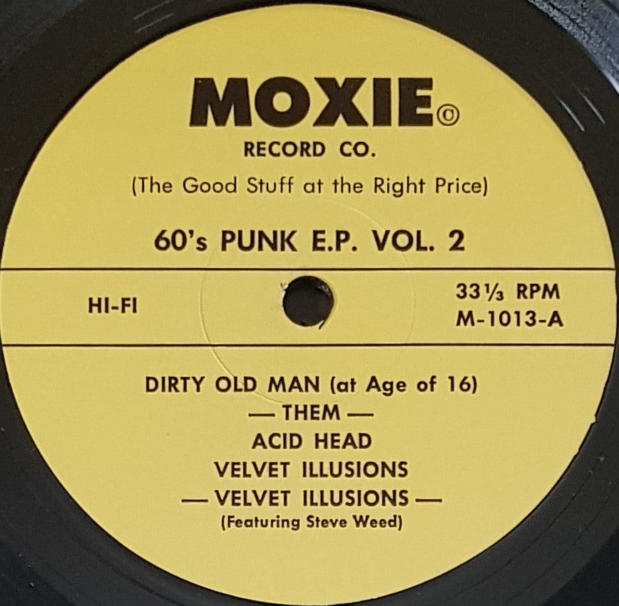 EP PS. 1979 Moxie Records M-1013. Obscure Rock 1965-68. Sleeve has minor foxing, small sticker stain and 2 small surface tears from removed stickers. Bottom seam has tiny split
