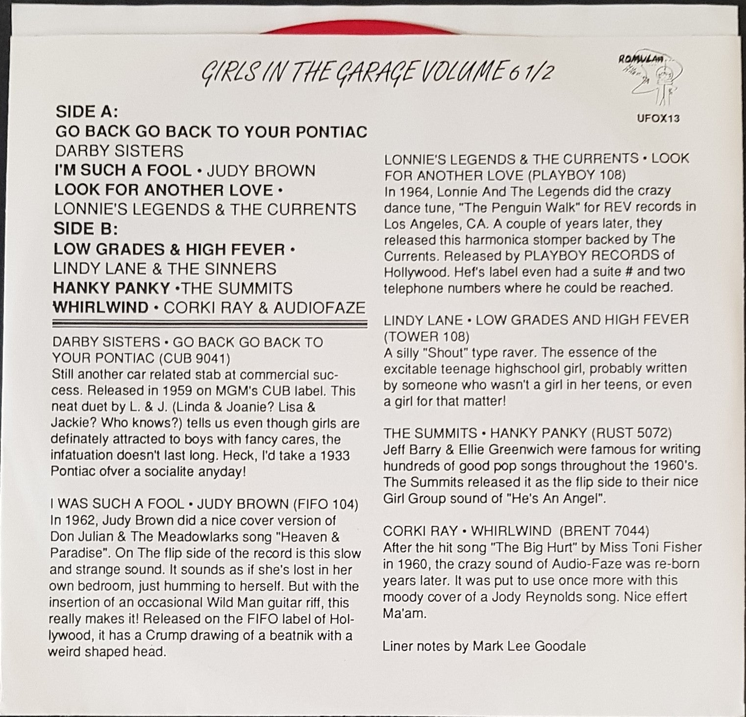 Red Vinyl EP PS. 1990 Romulan Records UFOX13. Minor Creases on Cover.