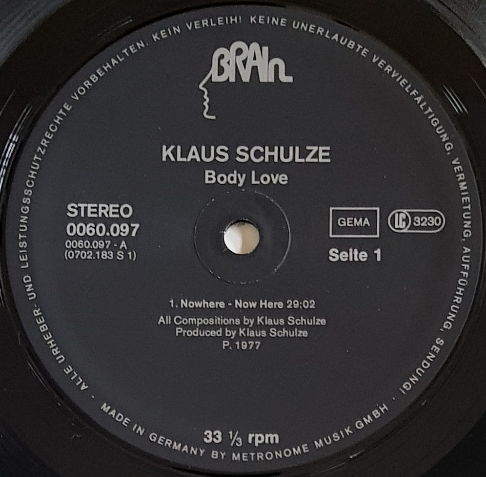 Black Label Reissue. Brain 0060.097. 2" split on top seam with some creases on edges and one corner. There is a small mark at the end of side 2 that clicks for about 4 revs