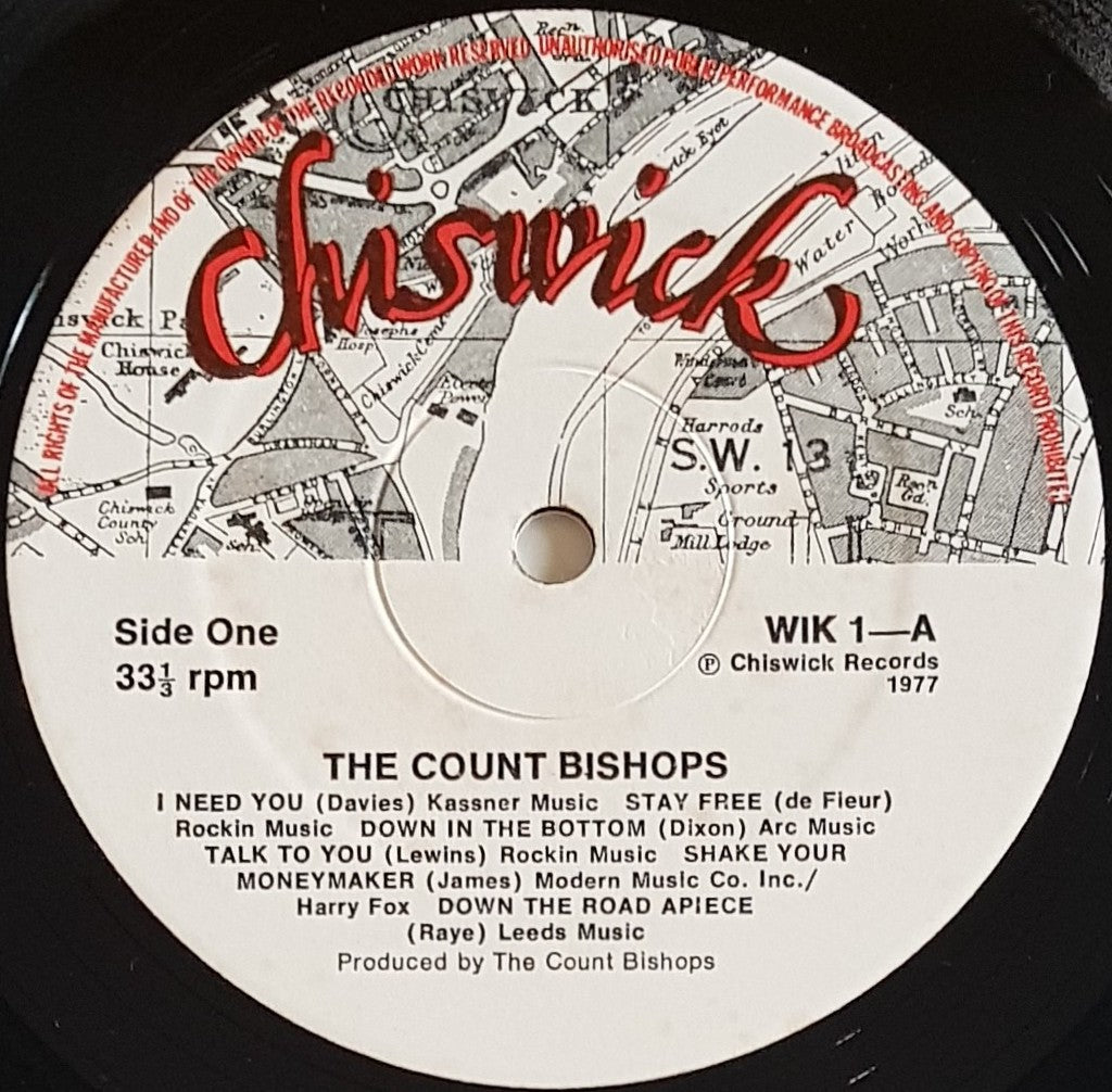 1977 Chiswick Records WIK 1. Cover has small seam split, 2 small tears at opening, foxing and small writing on rear. Foxing on labels