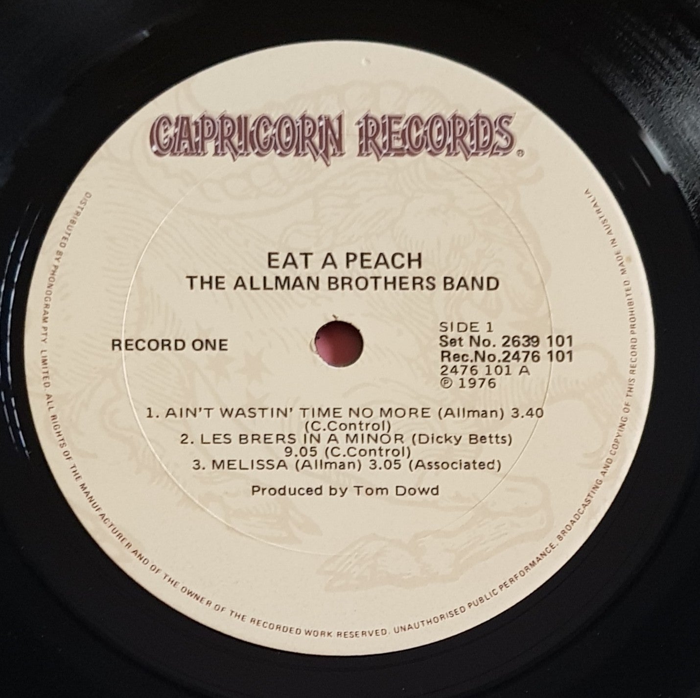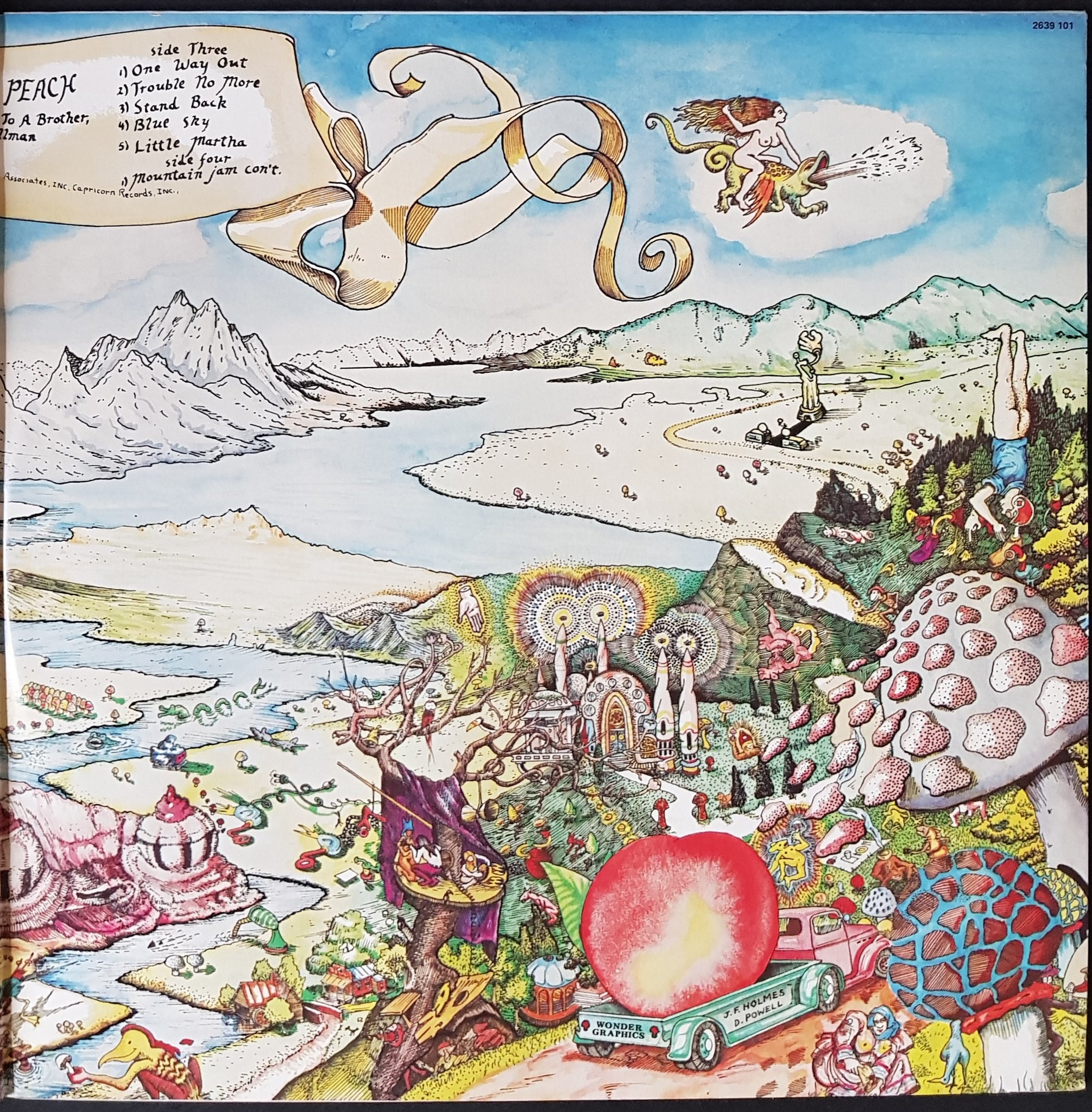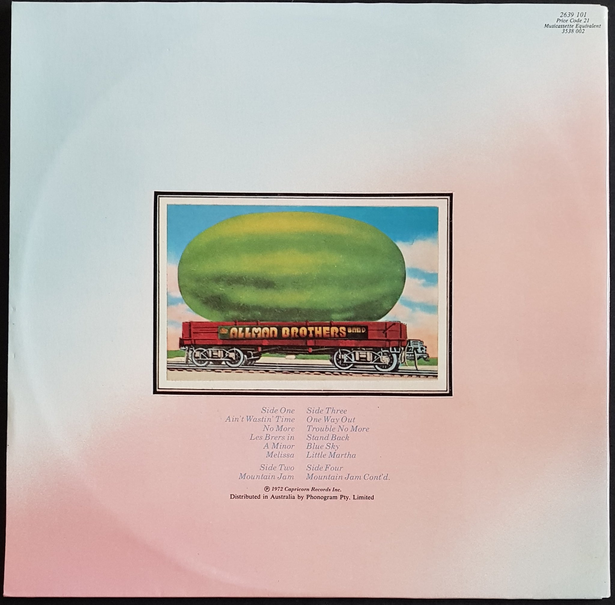 Gatefold Cover. 1976 Capricorn Records 2639101. Small water stain on cover, bottom LHC. Otherwise glossy and clean. S4 has radial mark which causes minor tick over 3 or 4 revs