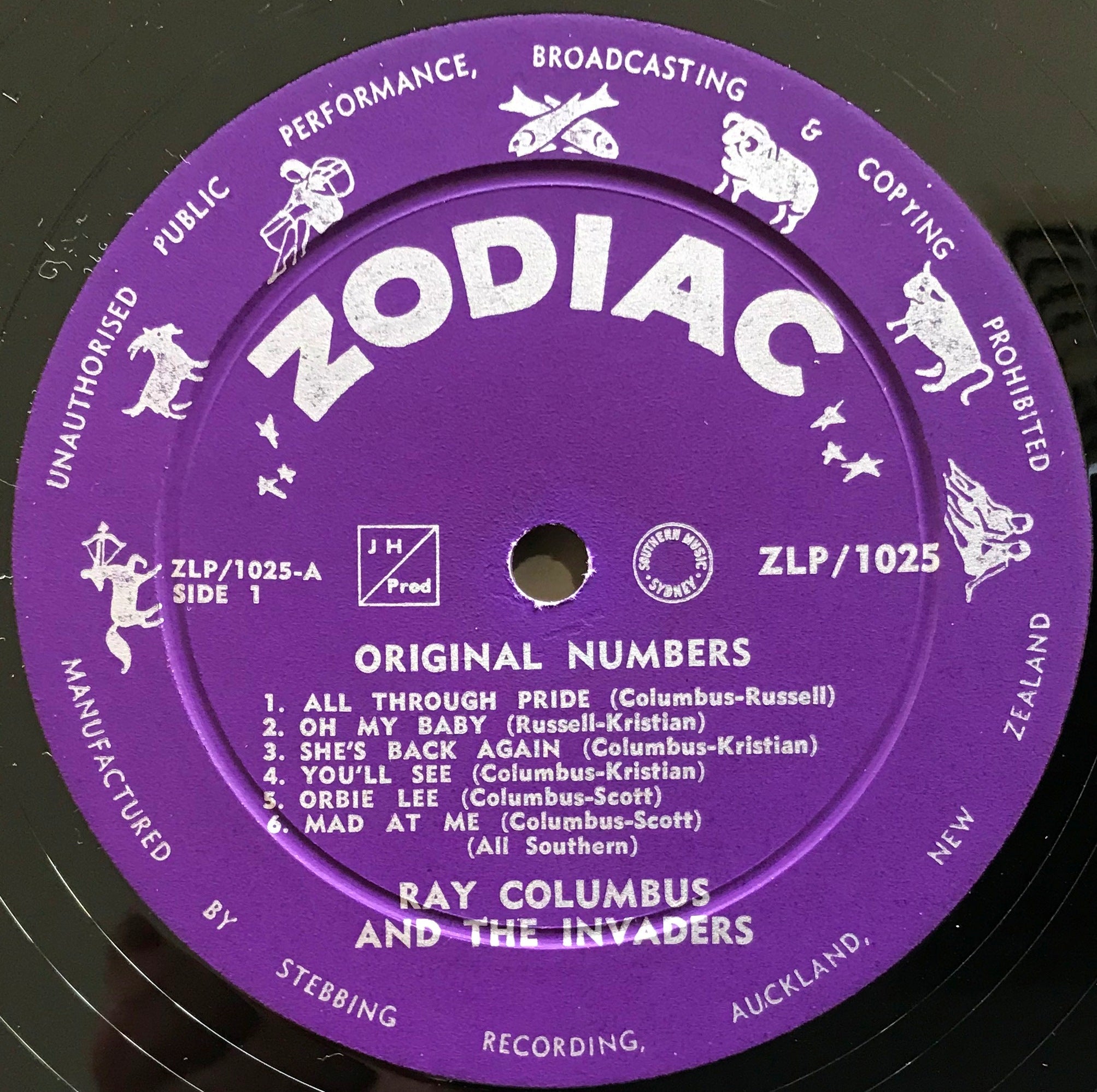 Original 1965 Purple/Silver Label ZODIAC ZLP1025. Very clean copy