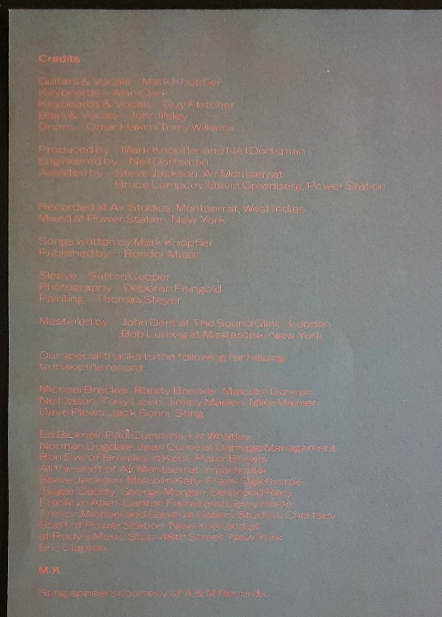 w.Lyric Insert. 1985 Vertigo 824499-1. Cover has surface / ring wear & corner crease. Light scuffs on disc