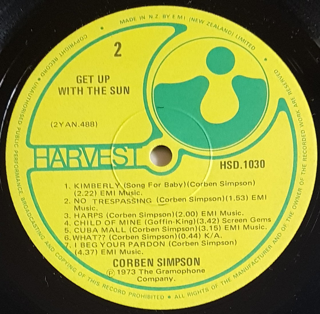 1973 Harvest HSD.1030. Laminated front cover has minor scuff / wear marks, handling creases and damage spot along opening. Ring wear and 2 water stains on back cover. Old shop sticker on rear.