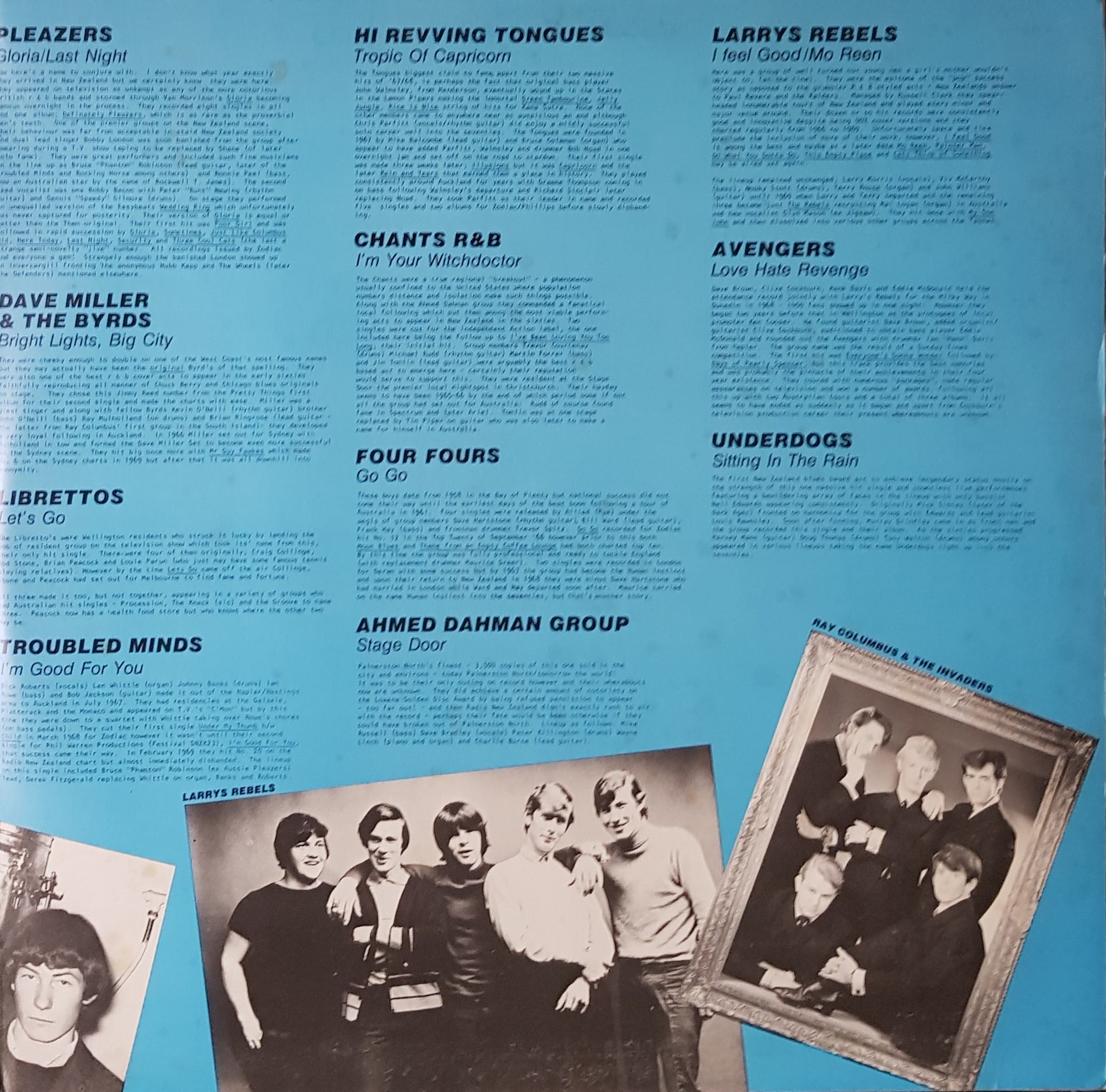 Compilation Of Classic New Zealand 60's Hits. 1980 K-Tel NZ 747. Features La De Das, Underdogs, Librettos, Pleazers, Ray Columbus, Larrys Rebels, Chants R&B, Dave Miller & The Byrds & Others. Corner creases, surface wear and scuffs with small damage spot