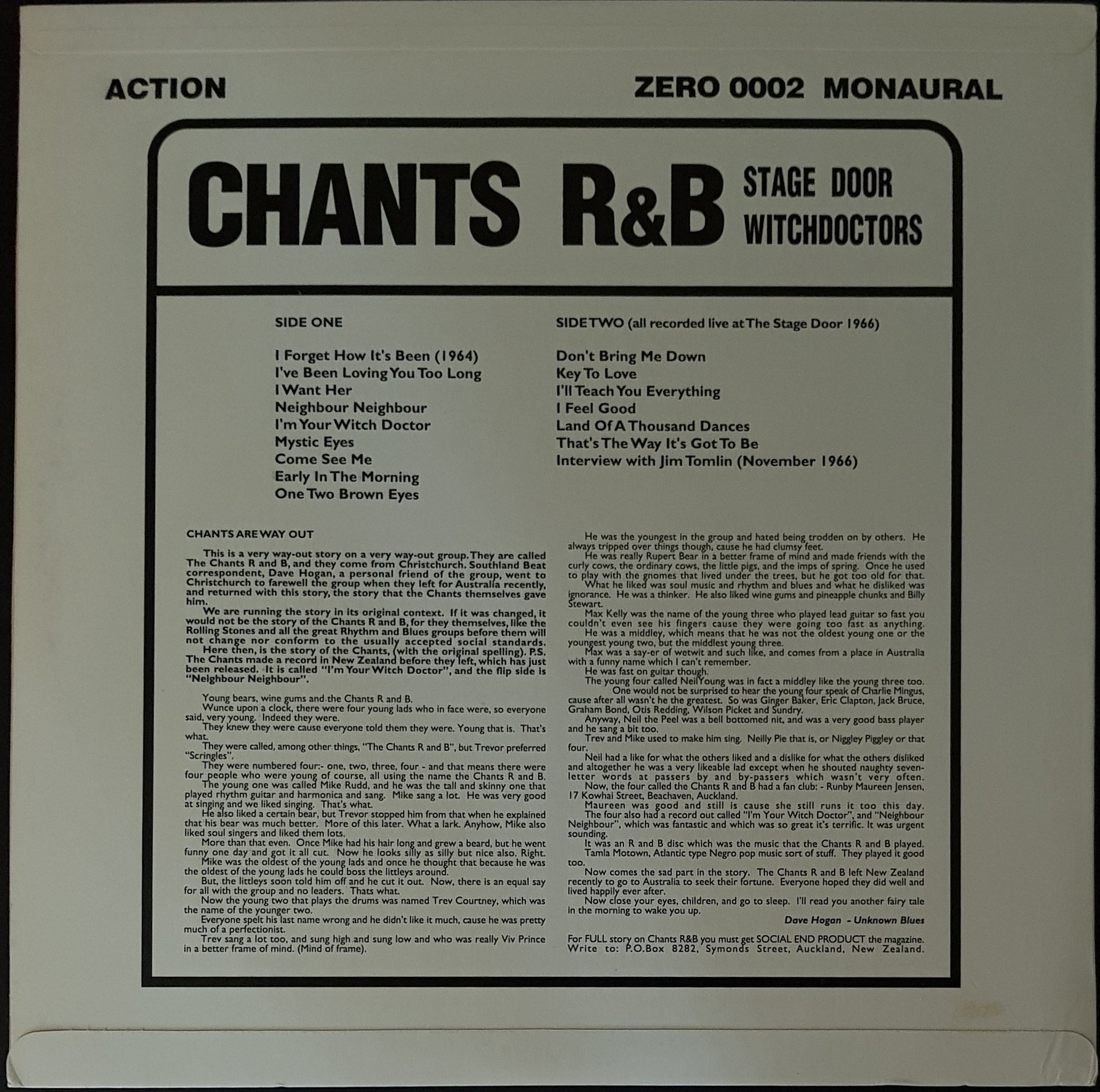 1995 ACTION! / ZERO Label. ACLP1001. Features Tracks Recorded live at The Stage Door 1966. Corner Crease on Cover