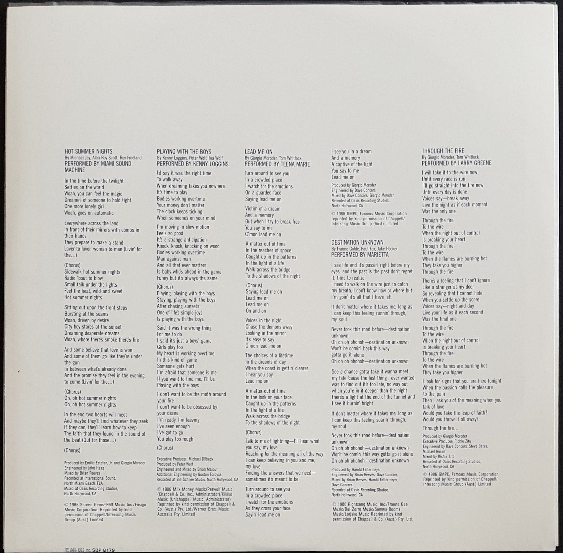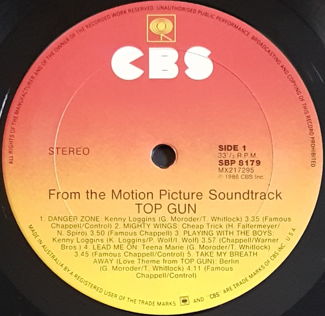 w.Inner Sleeve (has Foxing). 1986 CBS SBP 8179.