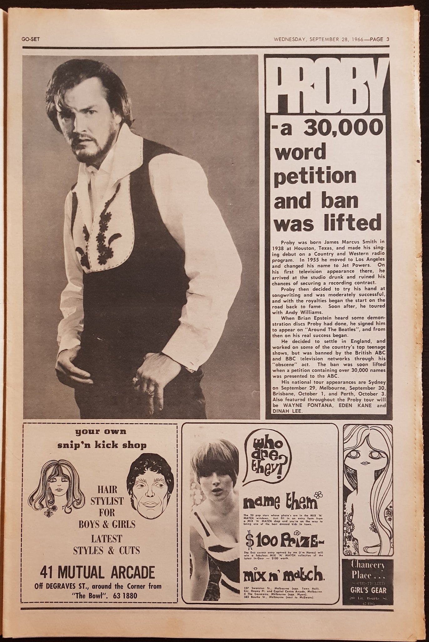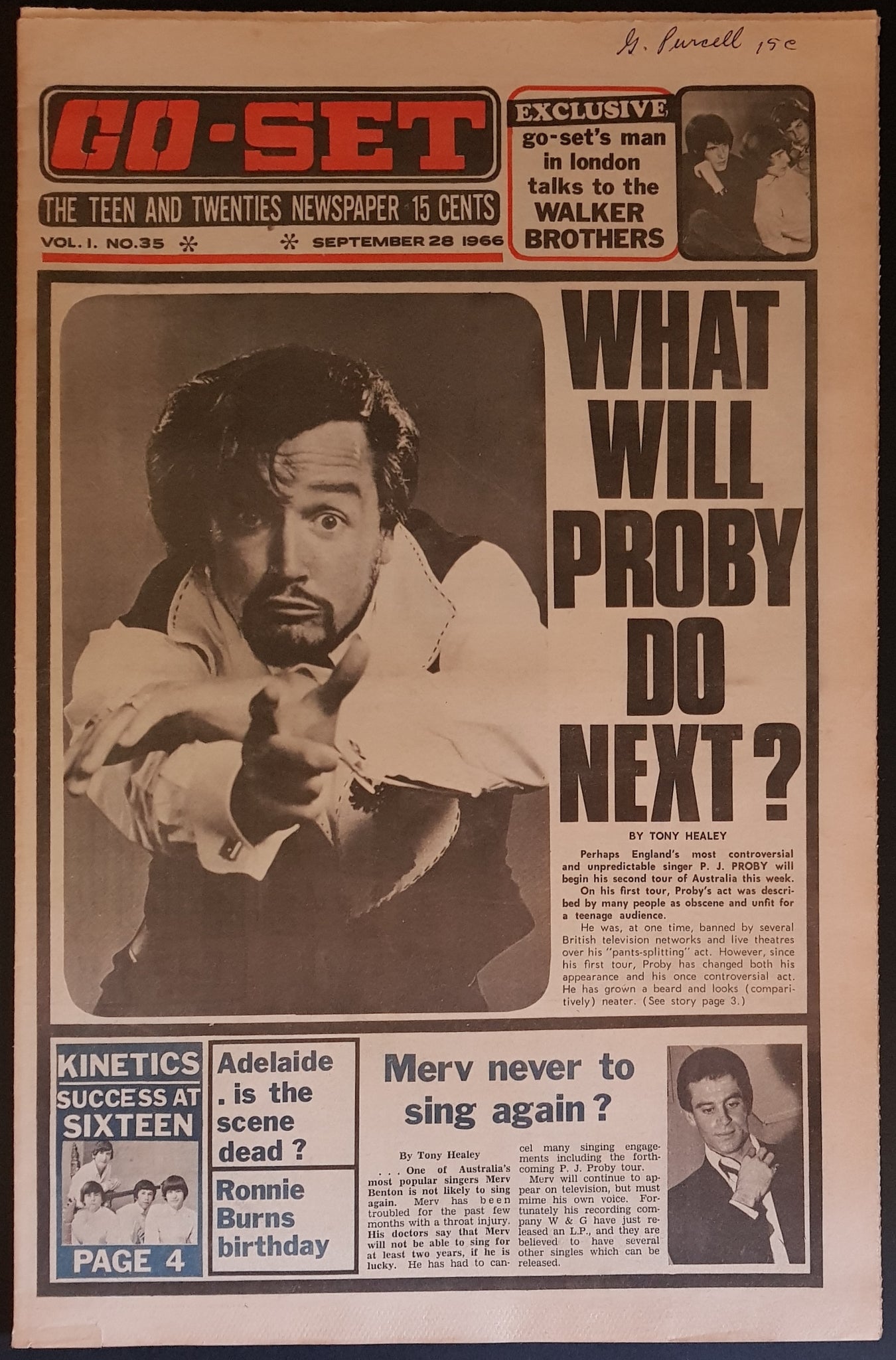 Style Music Magazine. Articles / Pictures on P.J. Proby. Y?4, Walker Bros, Ronnie Burns, Kinetics, Loved Ones, The Moods, Yvonne Barrett, Denise Drysdale. Billy Thorpe & The Aztecs / Steve & The Board - gig dates. Ads. Minor Foxing, stains and small tears