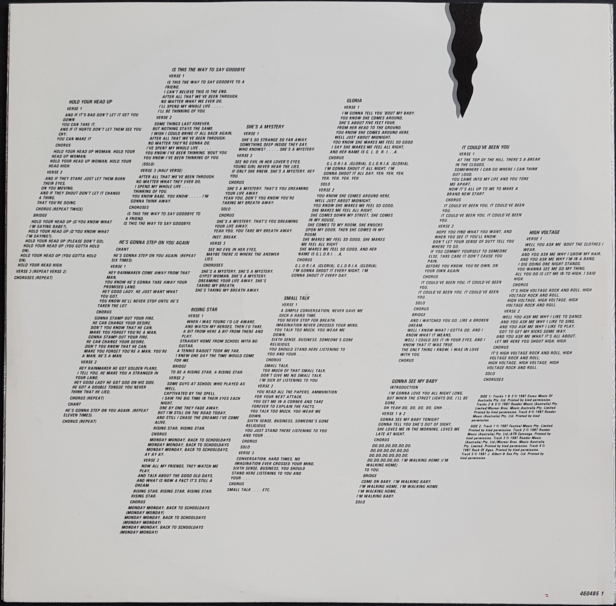 w.Inner Sleeve. 1987 CBS 4604851