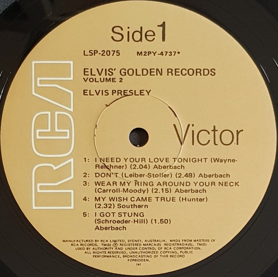 (Elvis' Gold Records, Vol. 2) Reissue w. Tan Label. RCA Victor LSP-2075. Cover has light creases along spine and minor wear on rear.