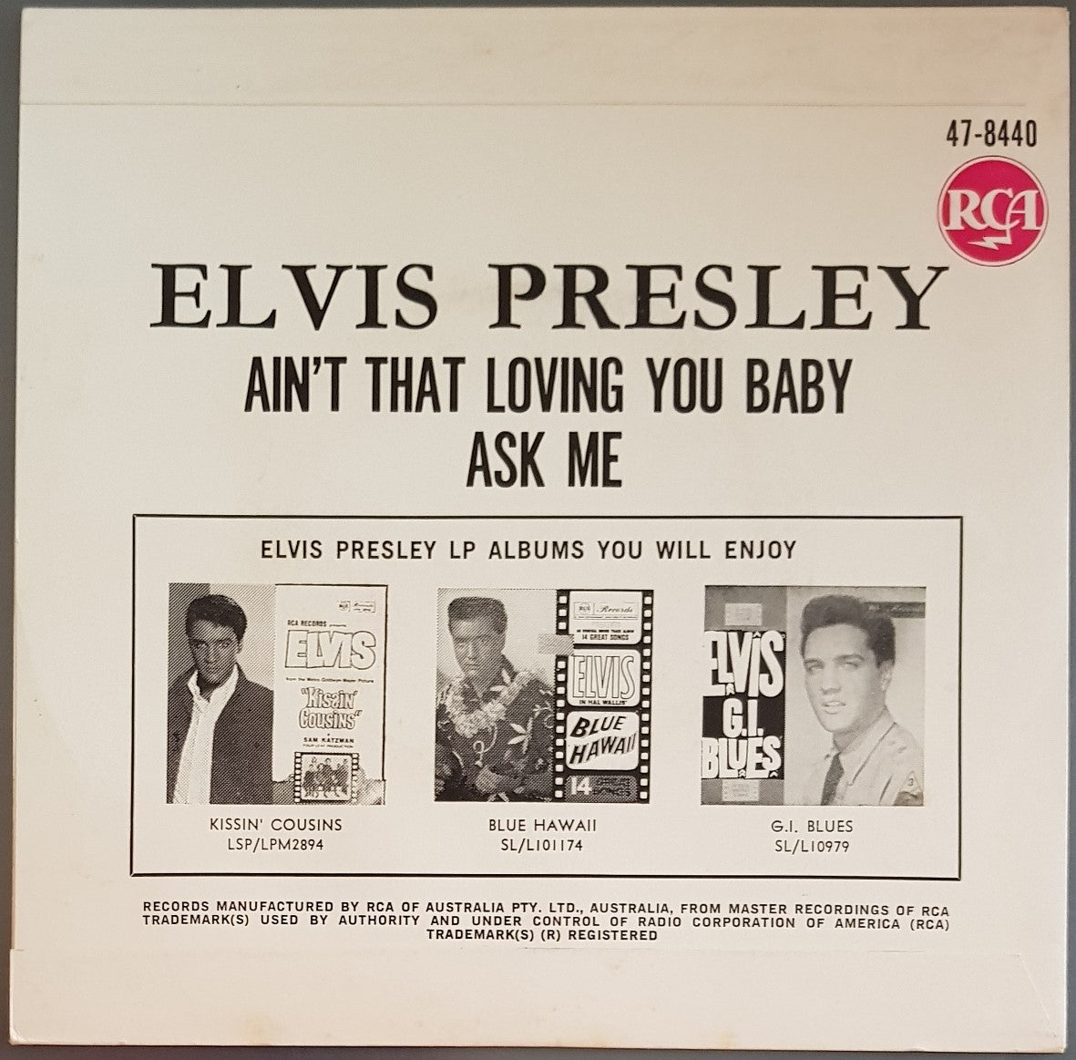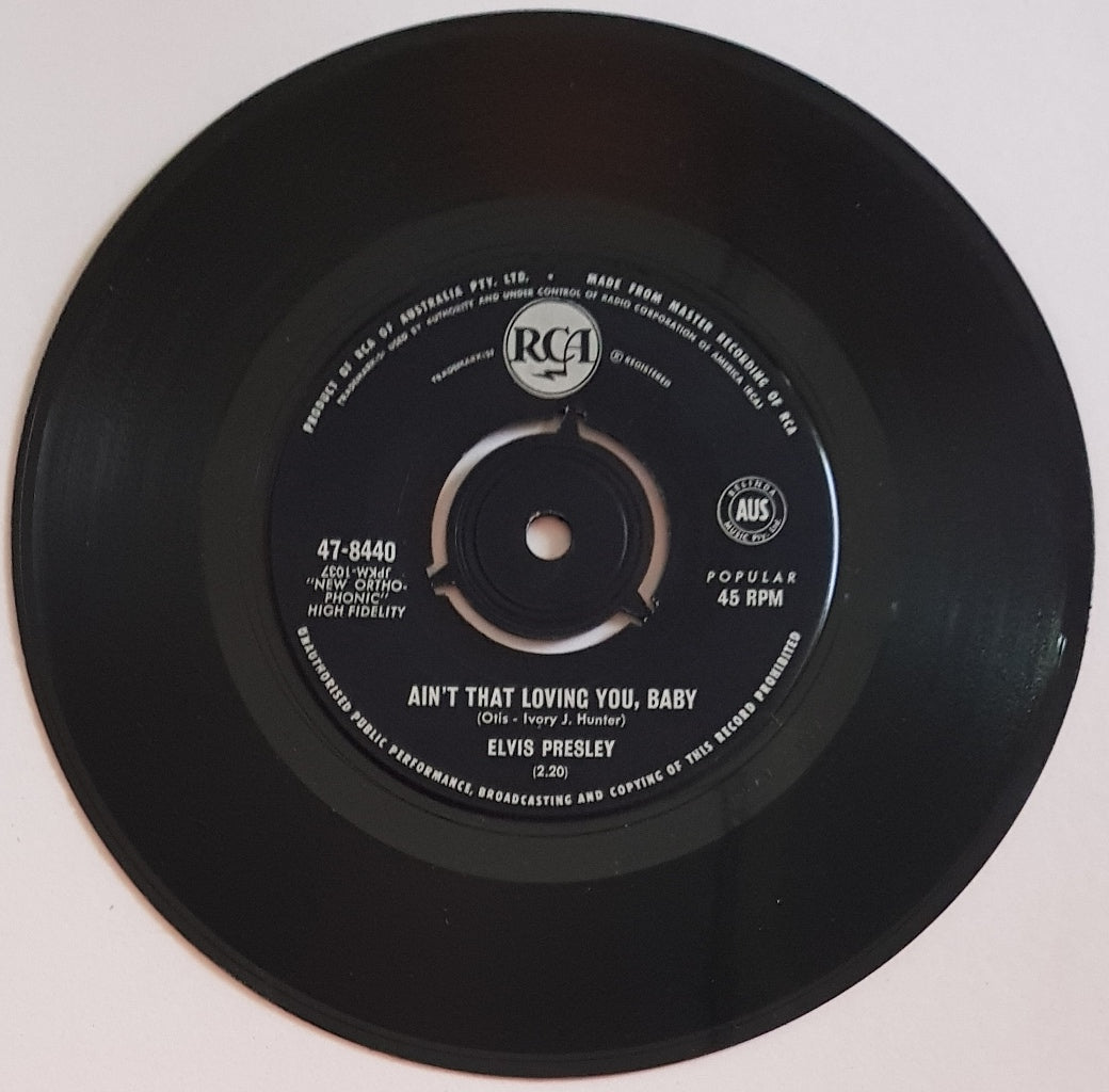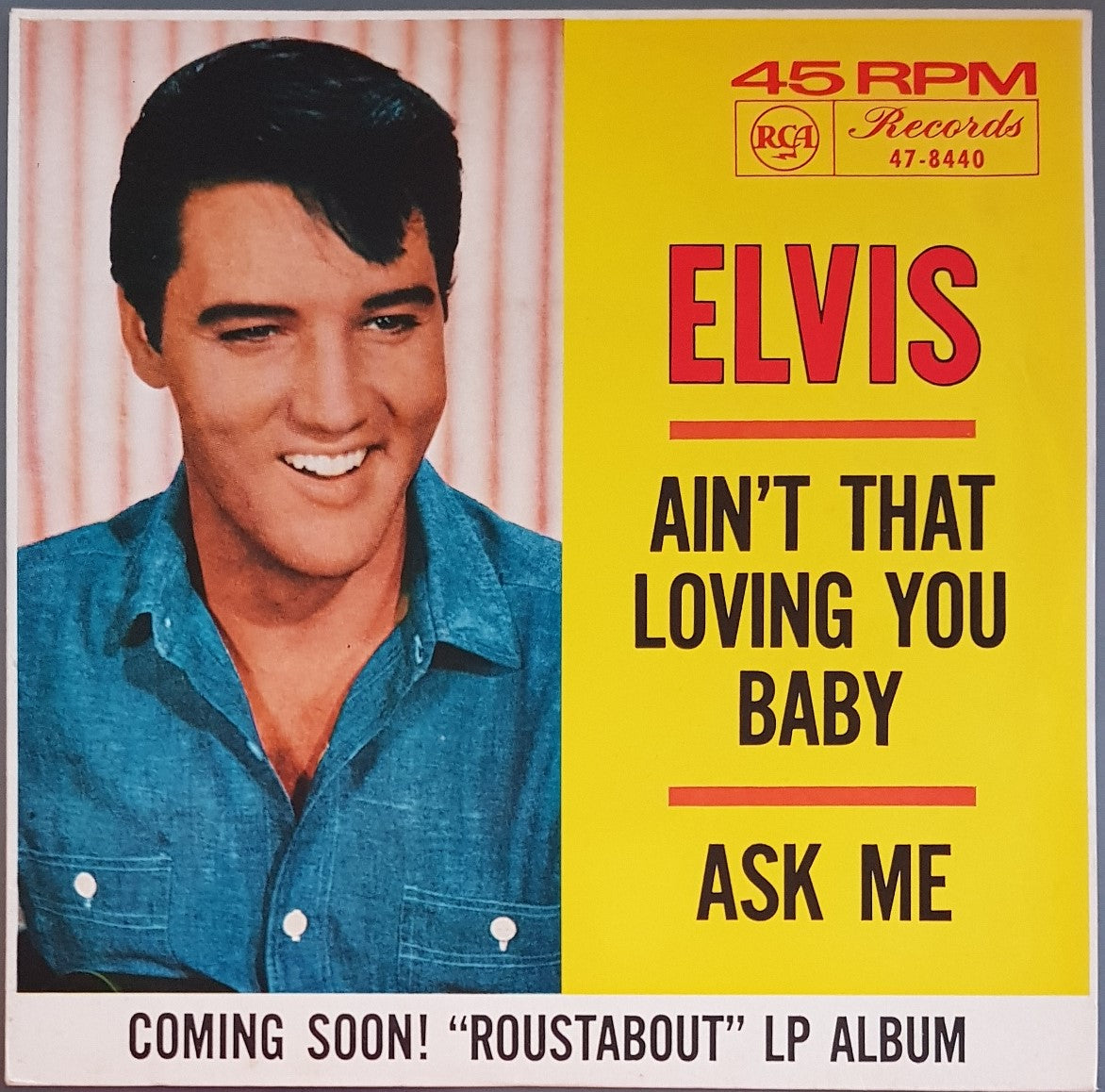 PS. Original Black & Silver RCA 47-8440. Has White Band Along The Bottom w. 'Coming Soon! "Roustabout" LP Album'