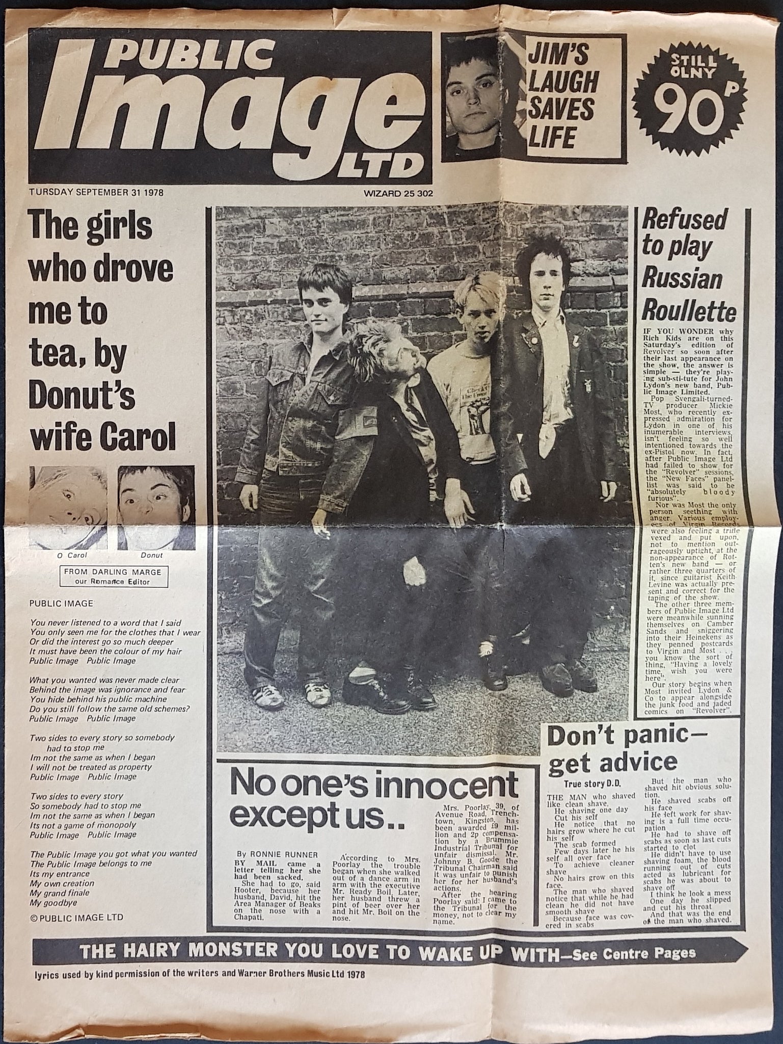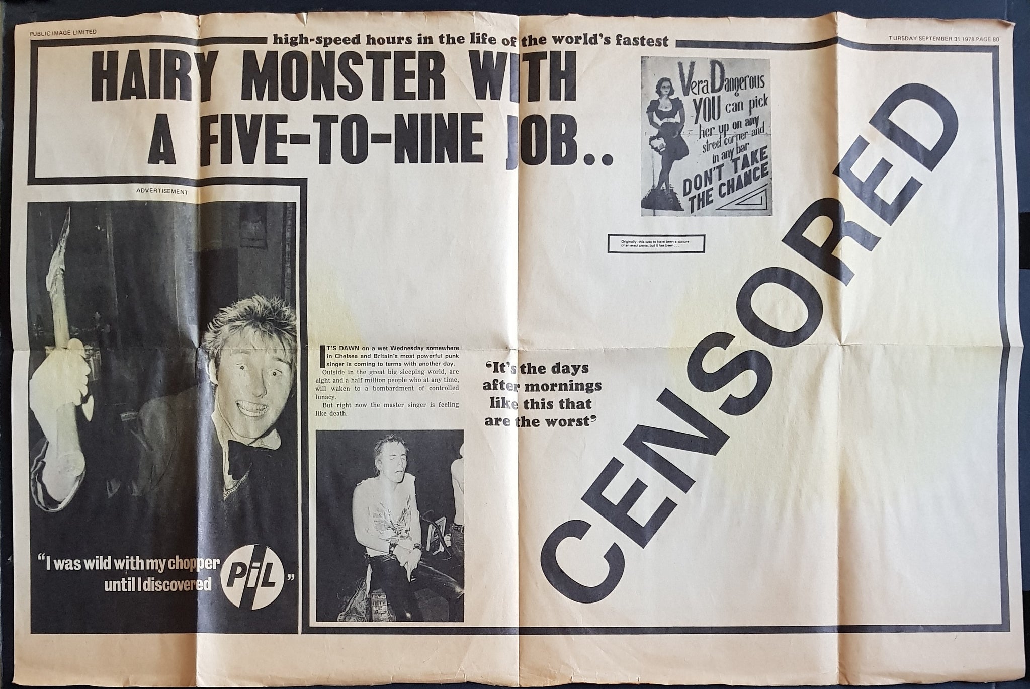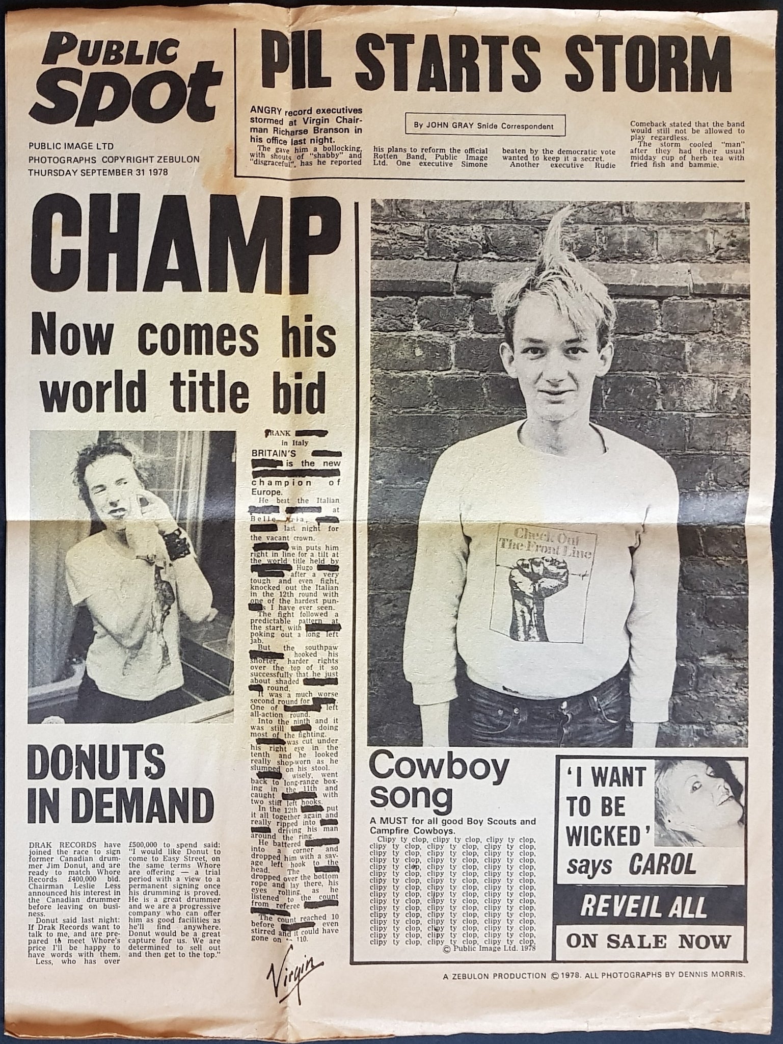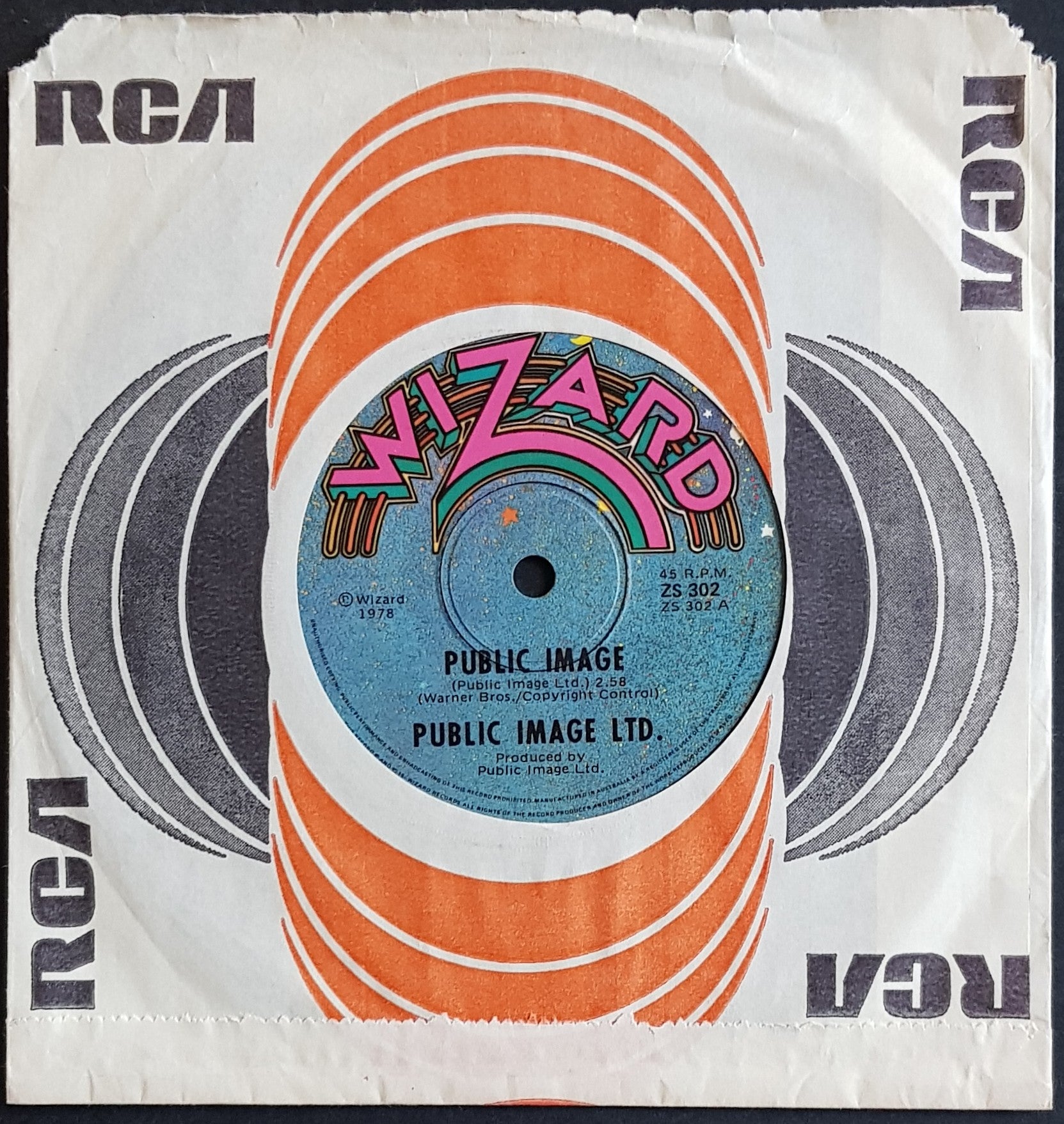 w.Newspaper Sleeve (slight browning / foxing, water stain and little tears along top). 1978 Wizard ZS 302. Minor haze effect on disc.