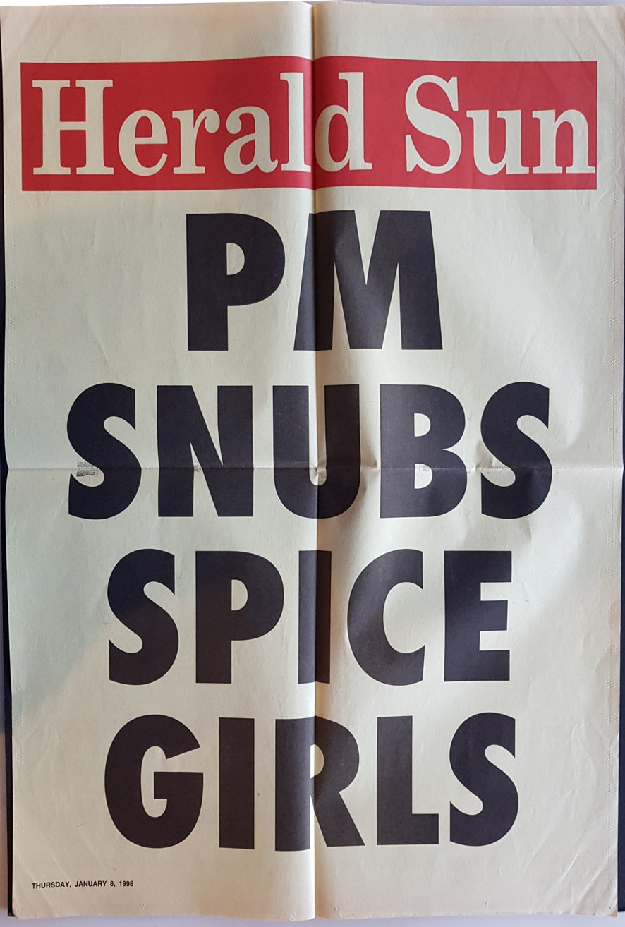 Advertising Wire / Poster w.Headline 'PM Snubs Spice Girls'. Jan.8 1998