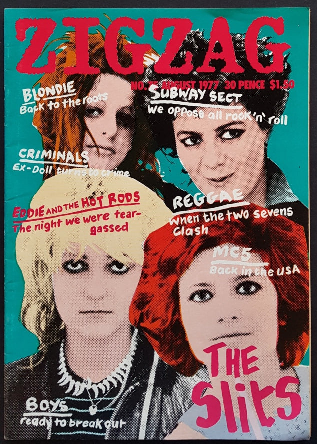 w.Slits Cover & 4p. Feature. Articles on Blondie & MC5. Aug.1977