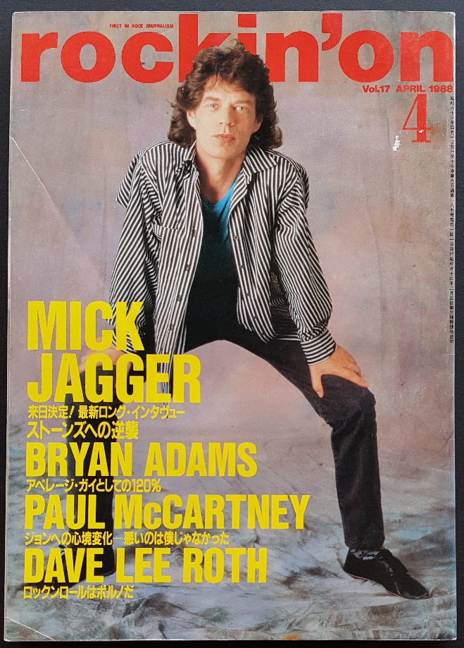 April 1988 w.Mick Cover & Article. Small crease, sticker stain and tear on cover