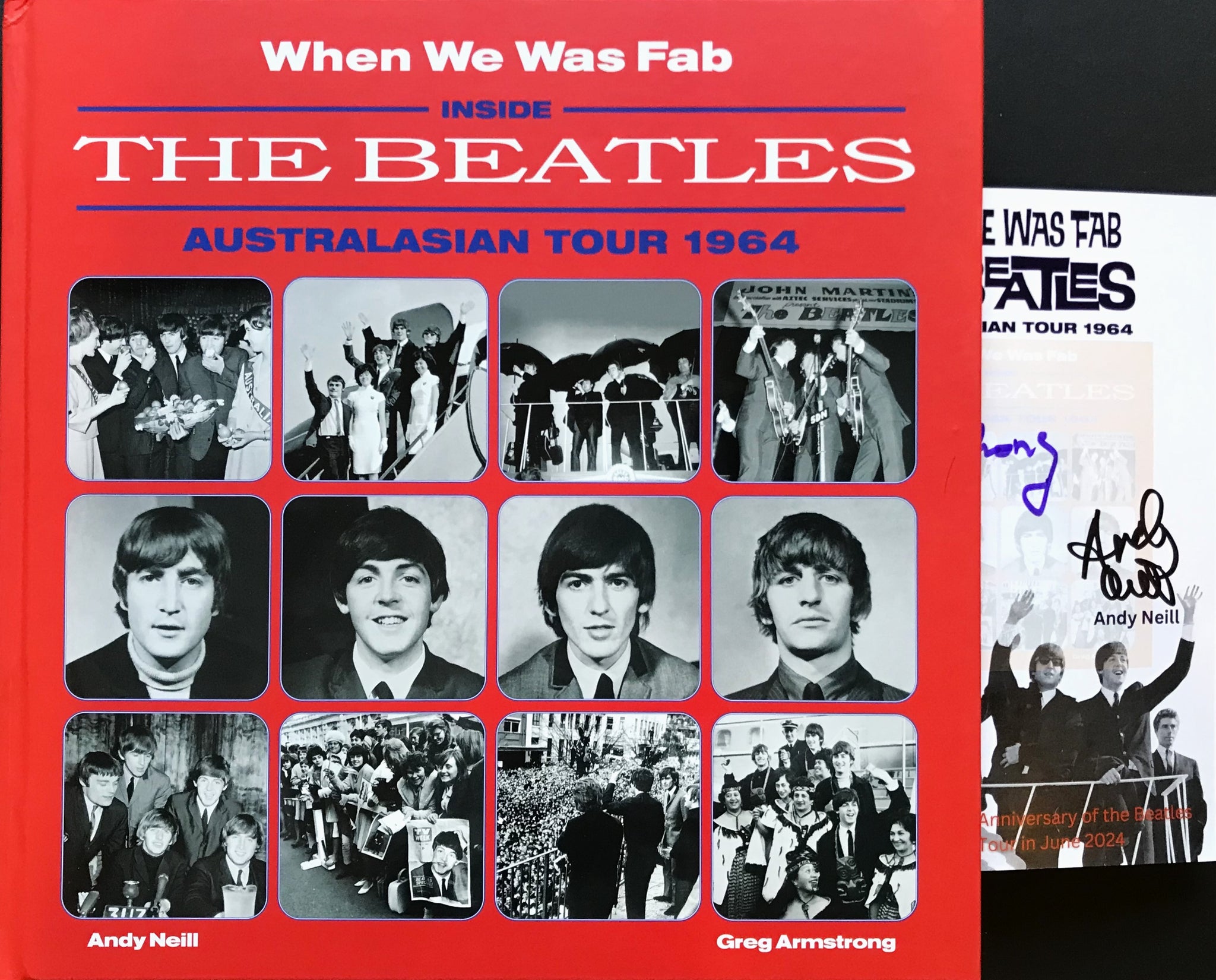 312 page hard back book Written and Compiled by Greg Armstrong and Andy Neill. 3500 copies only, for the world. The book covers the monumental and ground breaking tour of Australasia that The Beatles undertook 60 years ago during June 1964. The book covers every aspect of the tour and most of the material included has never seen the light of day previously. Our books will include an exclusive photo insert that has been signed by the authors during their recent in store visit. PLEASE NOTE: LAST COPIES HAVE SMALL SCUFFS AND SCRAPES DUE TO POOR PACKAGING AT POINT OF DISTRIBUTION.