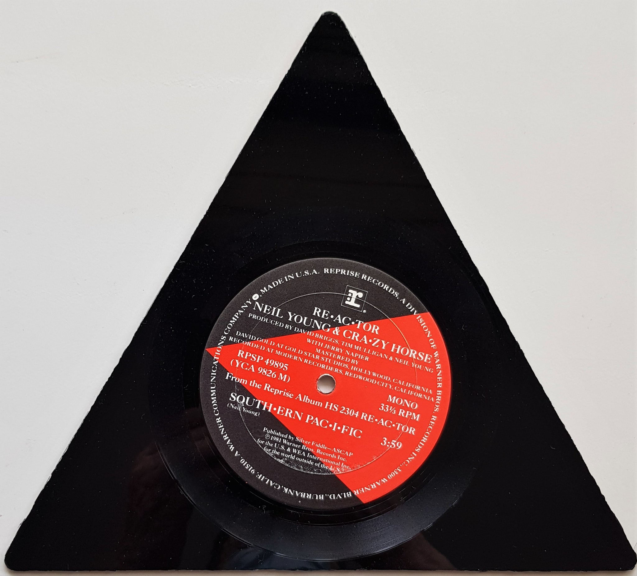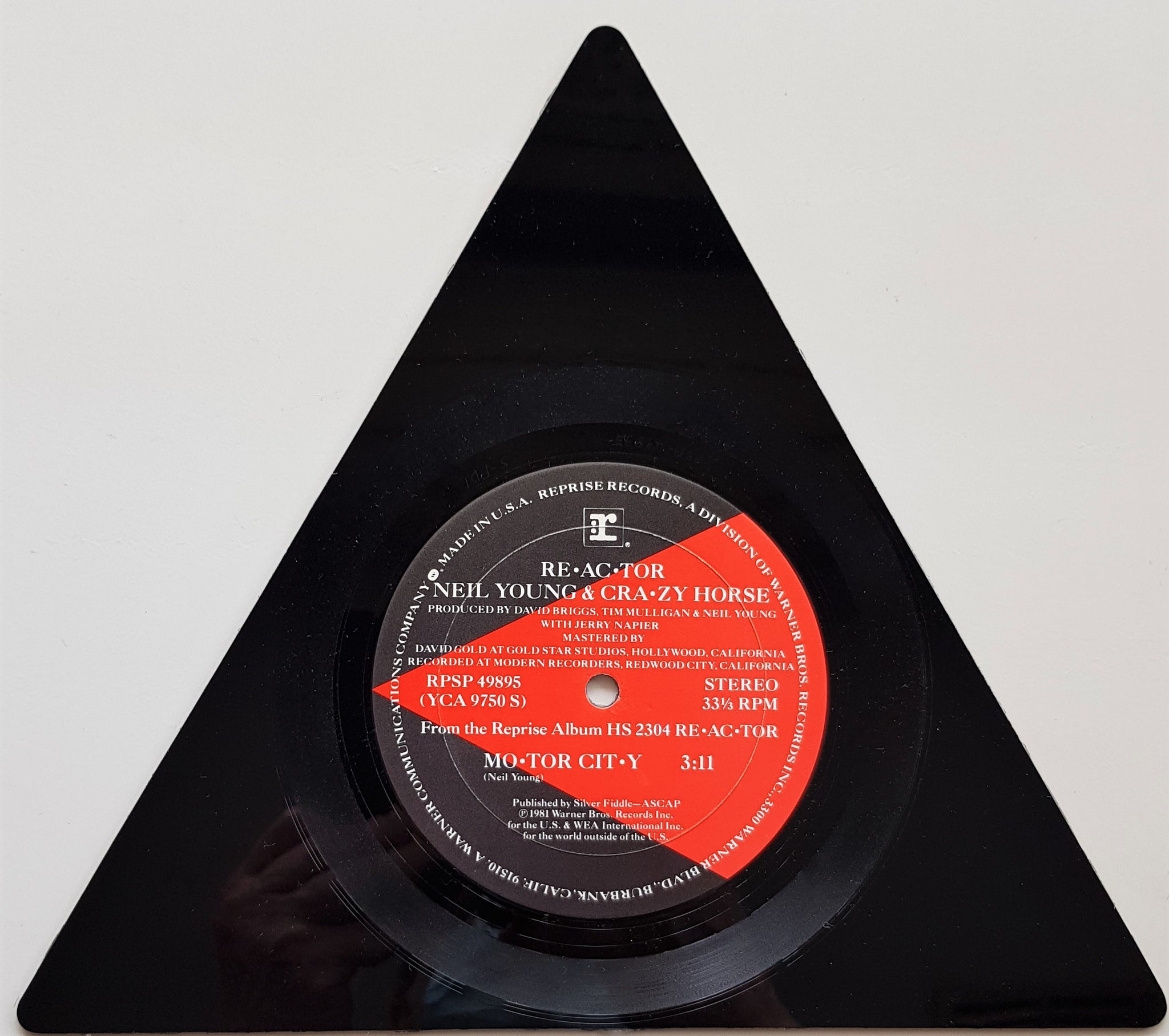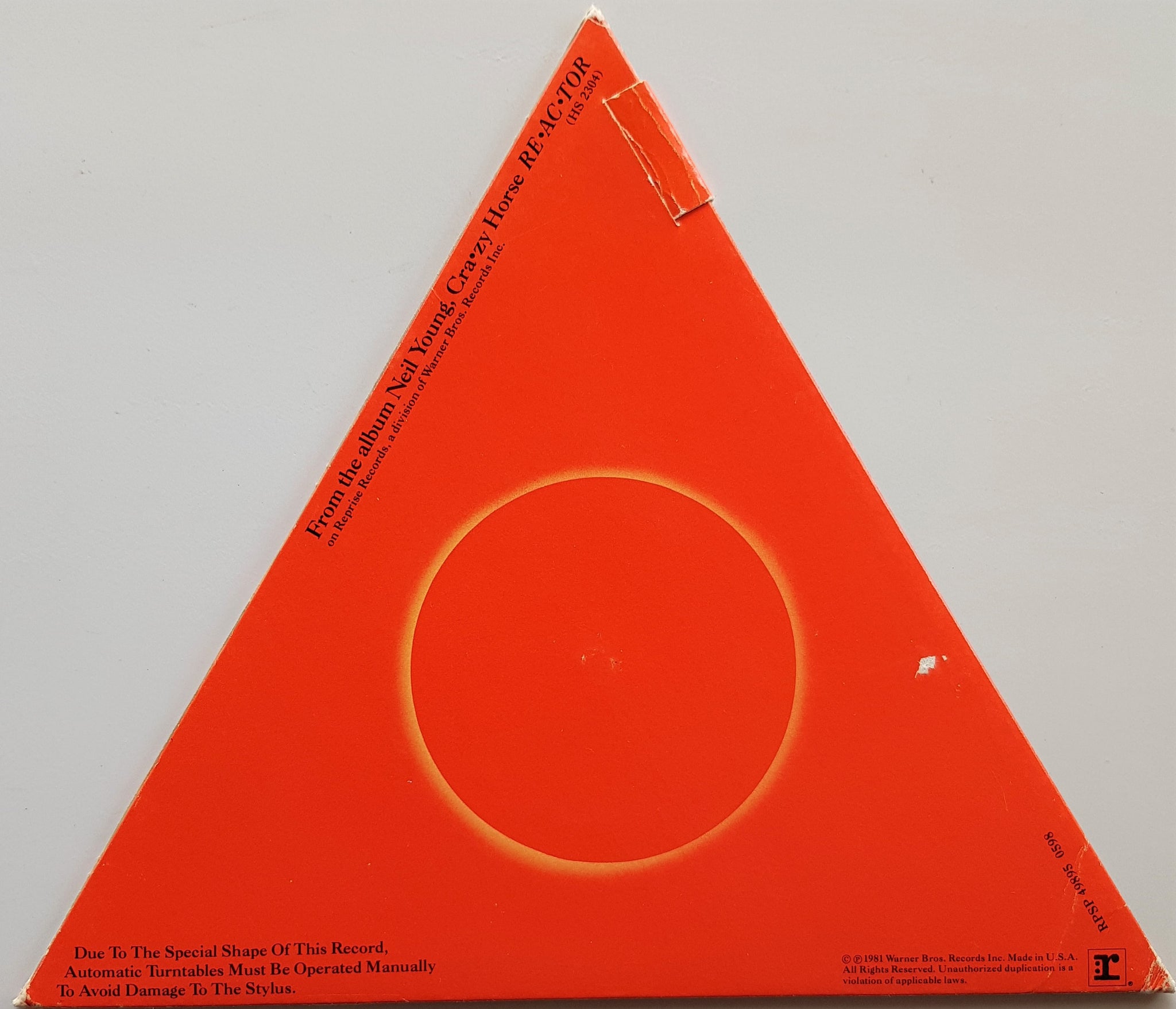 Black Vinyl Triangle Shaped Disc w.5" Cut. Has Card PS. 1981 Reprise RPSP49895. Promo Sticker On Sleeve, Sleeve is More Orange Than Red.