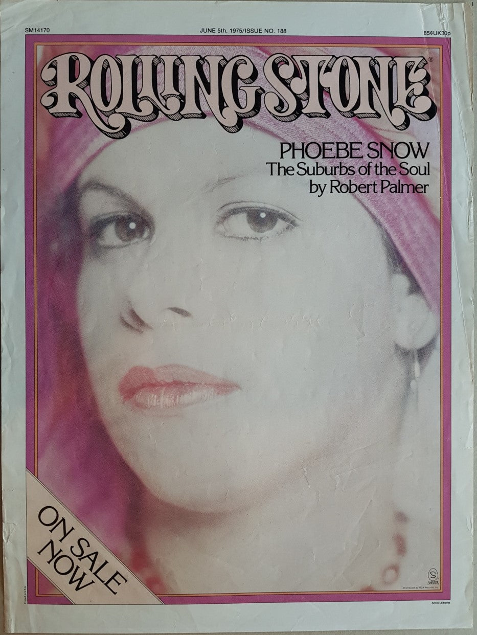 Display Poster For Issue no.188 June 5, 1975 which Featured Phoebe on the Cover (Annie Leibovitz Picture). 61cm x 46cm. Small Tears in Border.