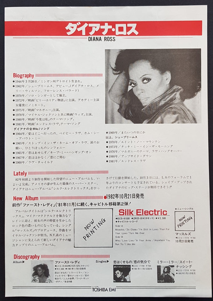 Ross, Diana - 1982 Toshiba EMI Info Sheet