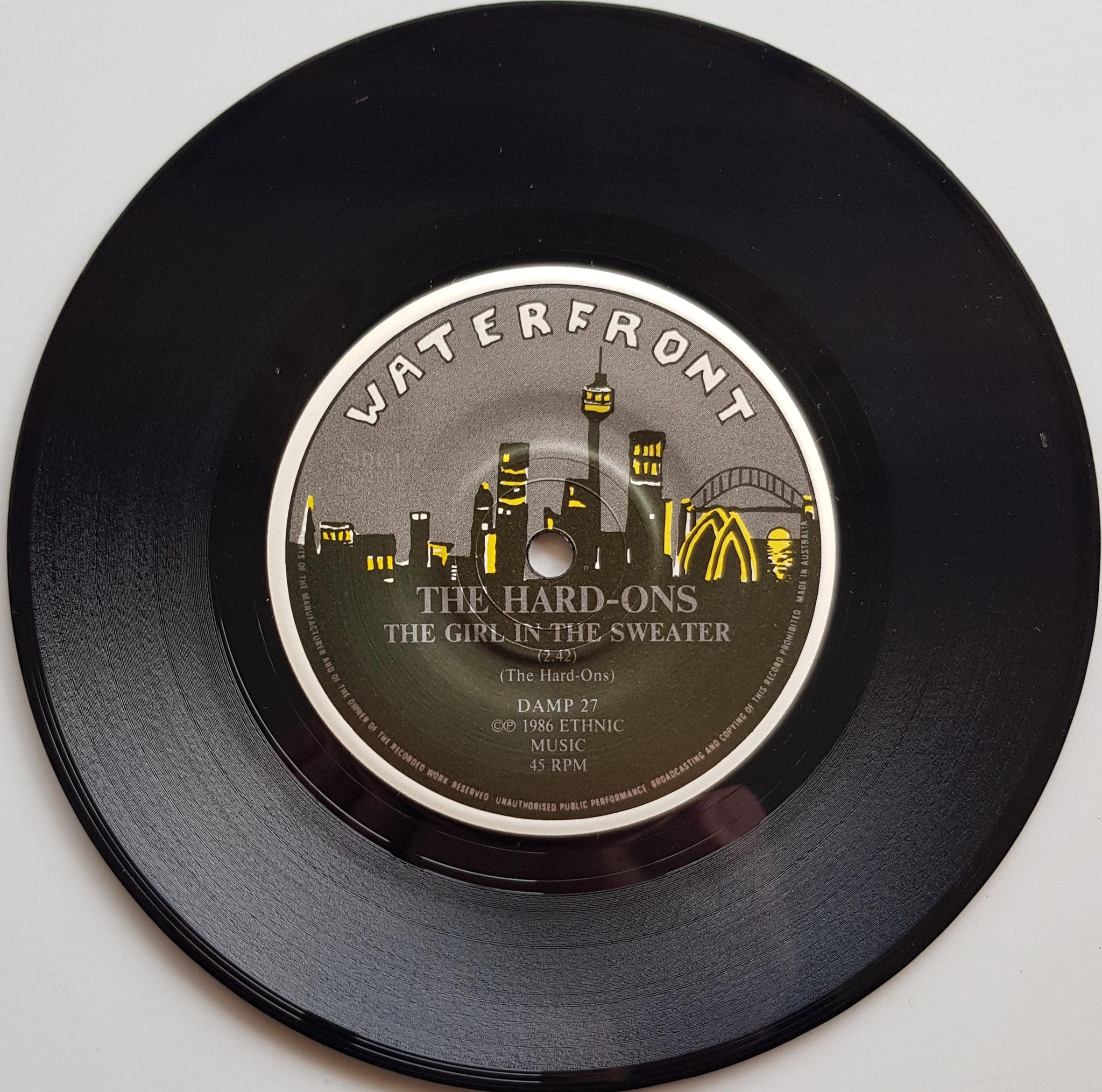 with Light Blue & Yellow PS w.Insert. 1986 WATERFRONT Records DAMP27.