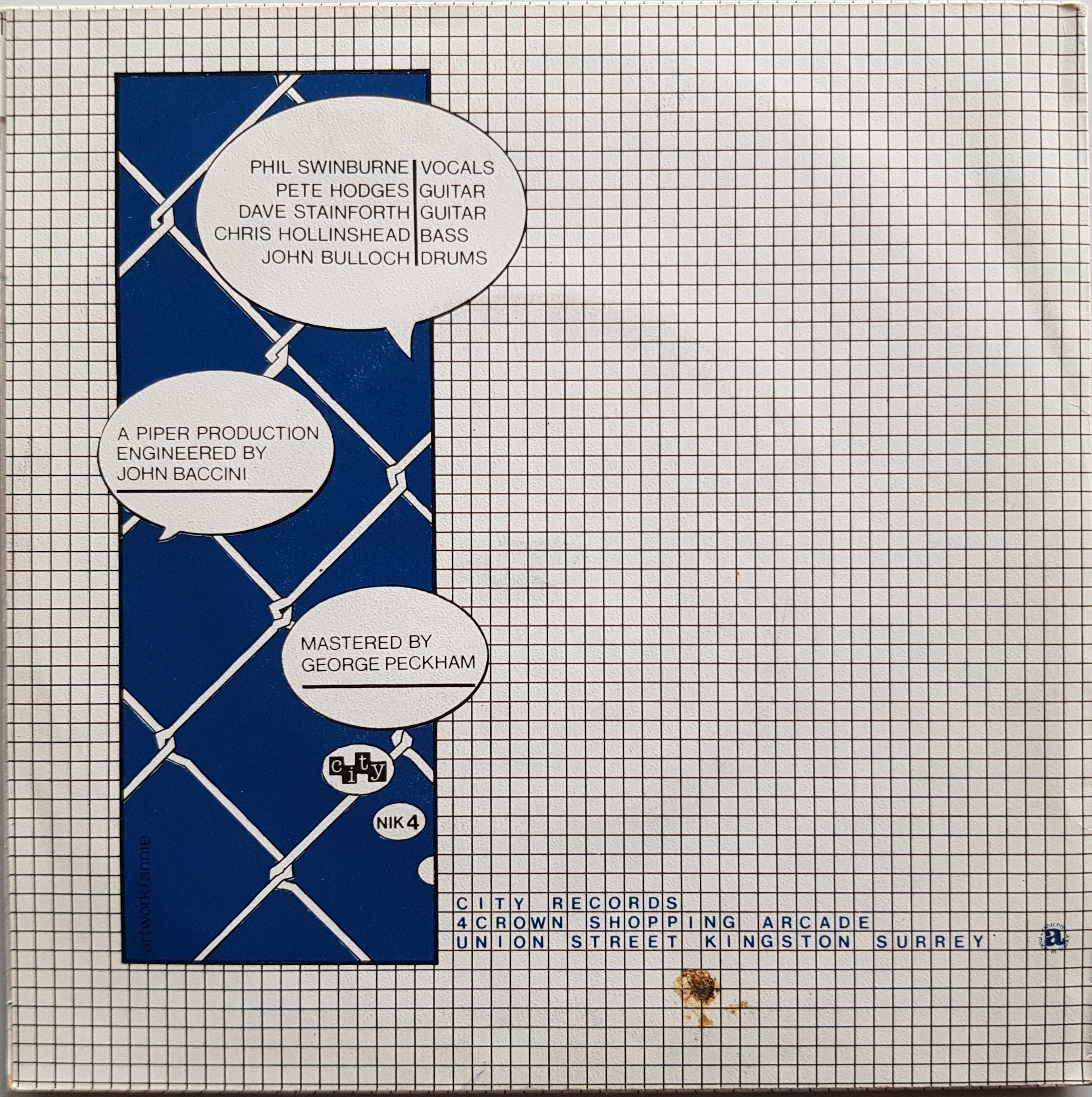 PS. Red Vinyl . 1978 CITY Records NIK 4. Faint Ring Mark & Small Stain on Back of PS.