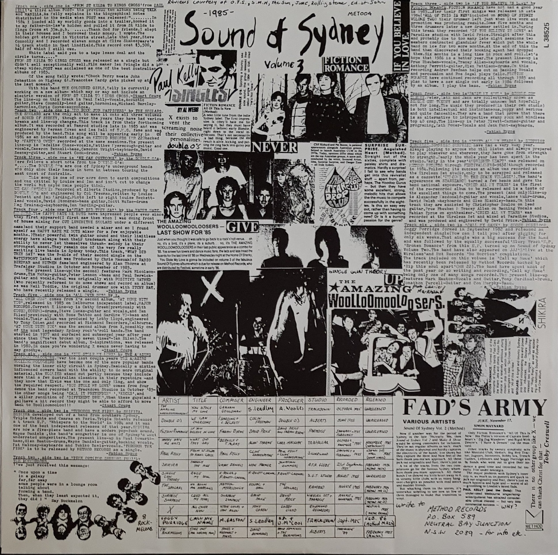 w.Inner Sleeve & Bonus Skolars 7"PS (NM/NM). 1986 Method Records L 38525. Minor wear and creases and cover. Date Ink stamp on label. Features Paul Kelly, X, Surprise Surprise, Soggy Porridge +++